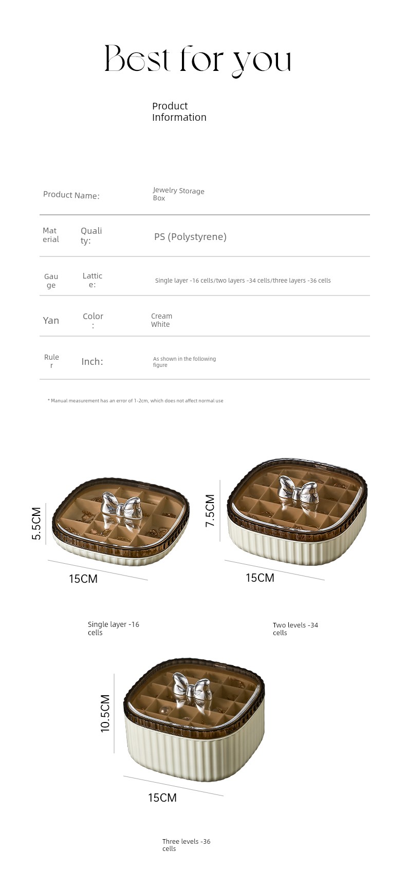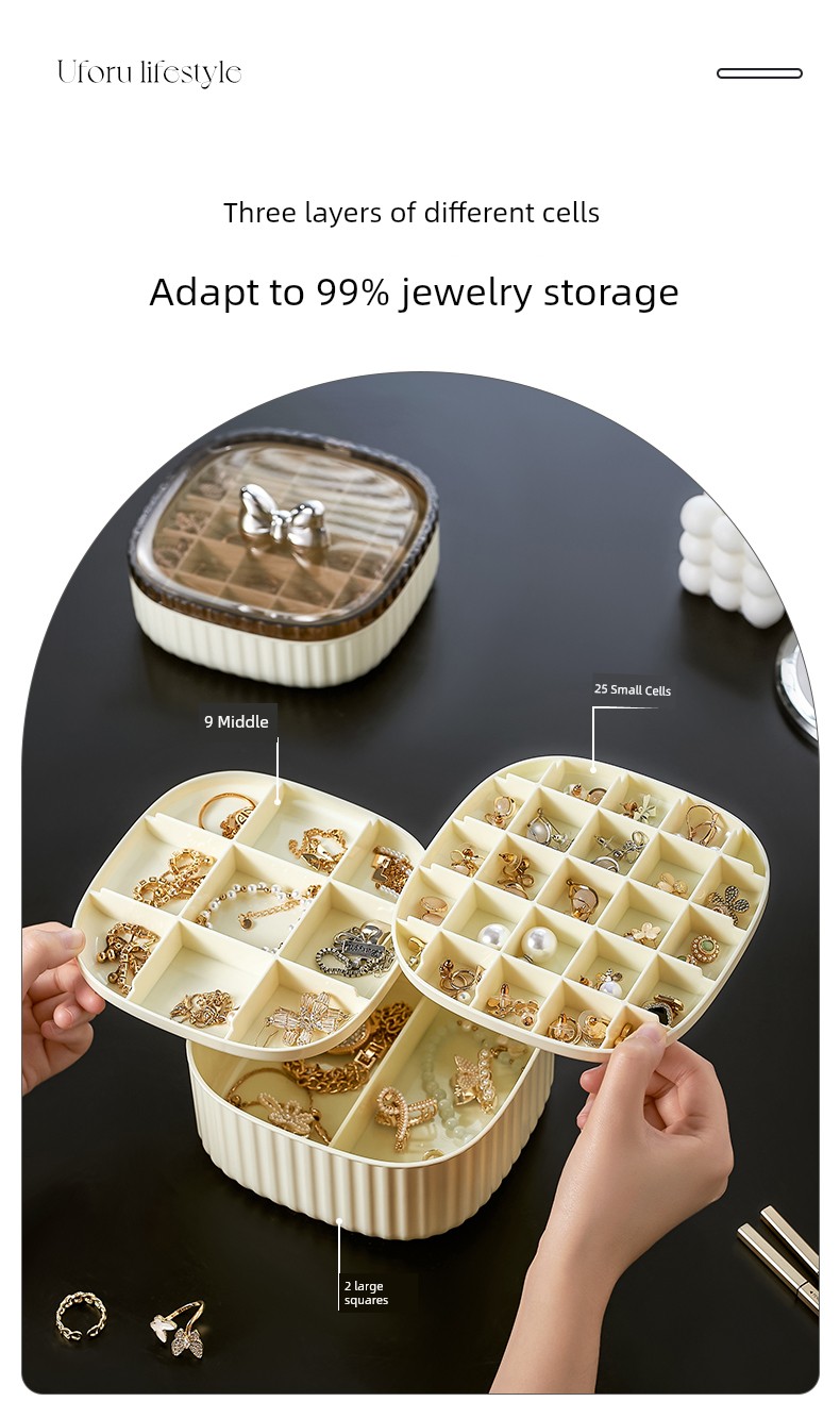 Imagine a treasure chest where every sparkling piece of jewelry finds its rightful place, showcasing your style and elegance. Introducing our High-End Multi-Layer Jewelry Storage Box, the perfect storage solution for your cherished accessories. As you unlock its layers, you open the door to a world where organization meets beauty, ensuring your favorite earrings, necklaces, and rings are beautifully displayed and easily accessible. This exquisite jewelry box was born out of a desire to solve the chaos of tangled chains and lost earrings. With the growing demand for efficient storage, we crafted this box to be more than just a container; it is a carefully designed sanctuary for your most prized possessions. Each layer is designed to please the discerning eye while providing exceptional functionality. Featuring multiple compartments, you can comfortably store a wide variety of jewelry types without fear of damage. The soft velvet lining protects your treasures from scratches, while the elegant, high-quality finish makes it not only a storage solution but a stunning décor piece. Say goodbye to cluttered drawers and hello to a jewelry collection that sparkles just as brightly as you do. Picture yourself as you open the jewelry box for the first time, the smooth finish sliding gracefully open and revealing each magnificent layer. Visualize a moment of joy as you gently take out your favorite pair of stud earrings, feeling the luxurious material under your fingers. It’s a simple act, yet one filled with satisfaction and delight, as this elegant box enhances your daily routine. Our customers can’t stop raving about their newfound organization and style. “This jewelry box has transformed my space! It’s not only beautiful but practical. I can finally see all my jewelry, and it feels so special every time I use it,” shared Lisa K. “I gifted it to my sister, and she loved it! The design is stunning, and the quality is top-notch,” said Mark F. Are you ready to elevate your jewelry organization game? Don’t wait—embrace the opportunity to own this exquisite High-End Multi-Layer Jewelry Storage Box. Order now and experience the perfect blend of style and functionality, where your jewels can shine just as you do!