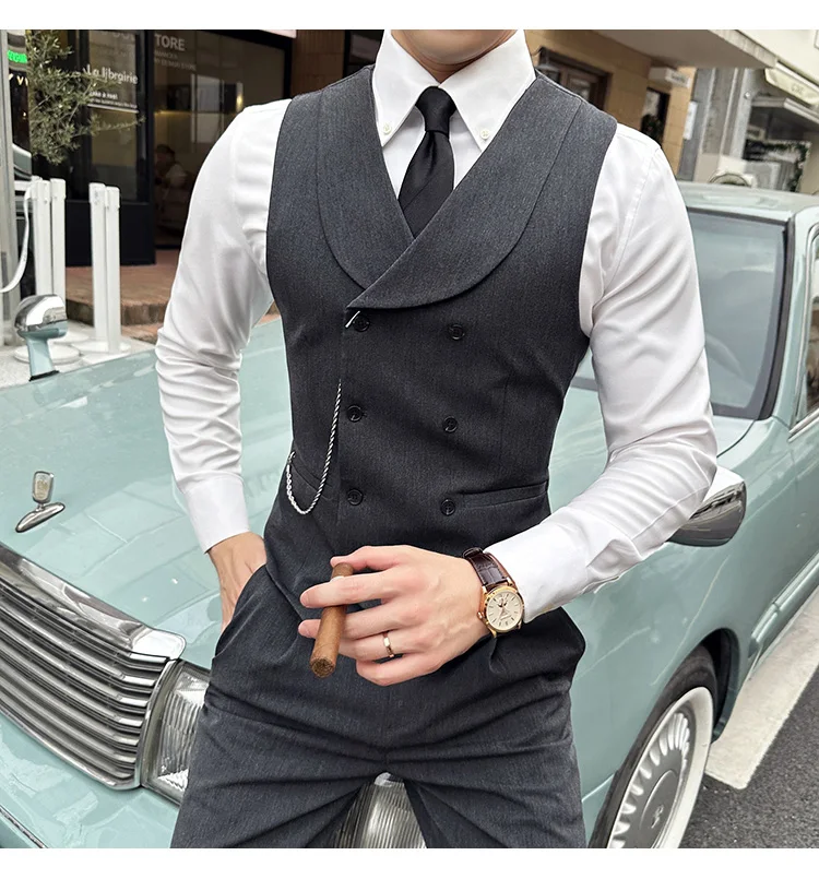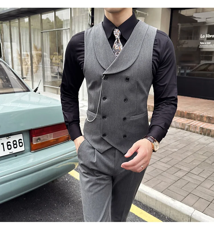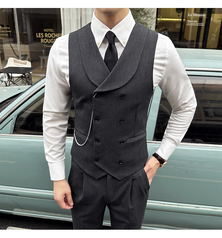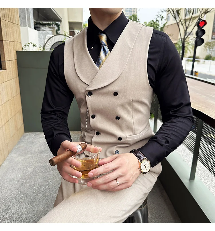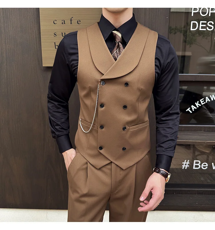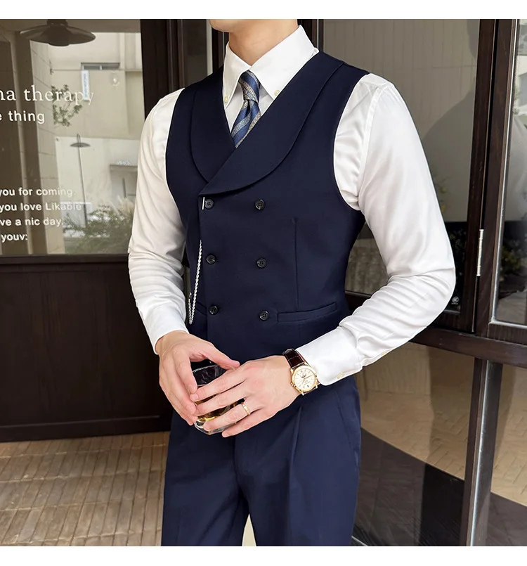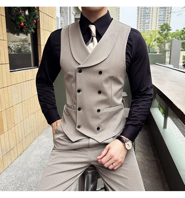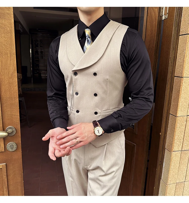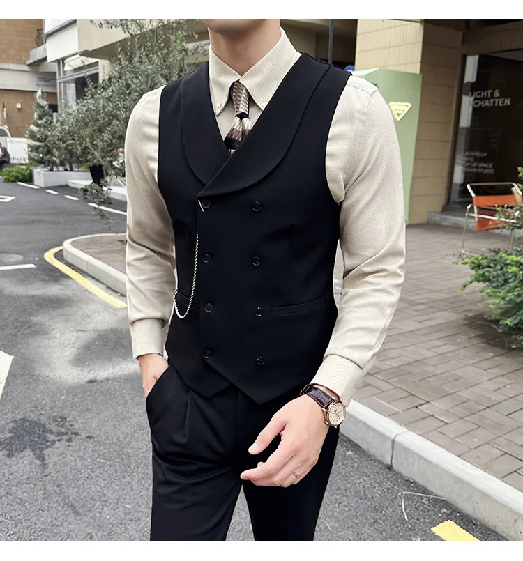 High Quality Autumn Double Breasted Suit Vest Men Business Formal Sleeveless Vest Slim Fit Wedding Groom Banquet Party Waistcoat