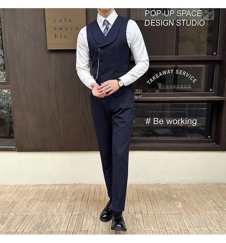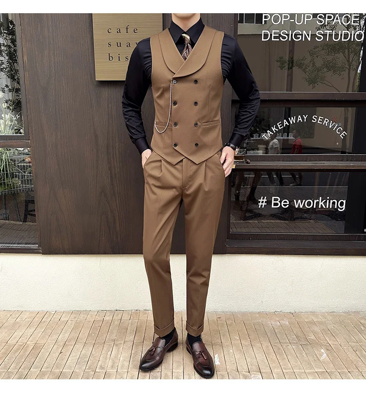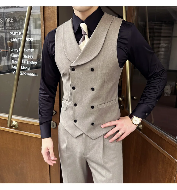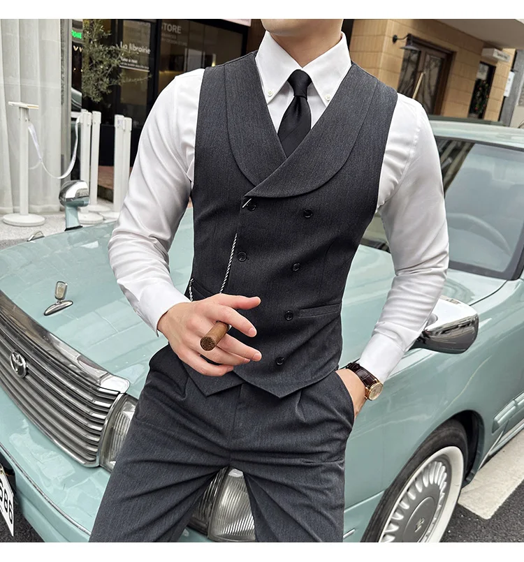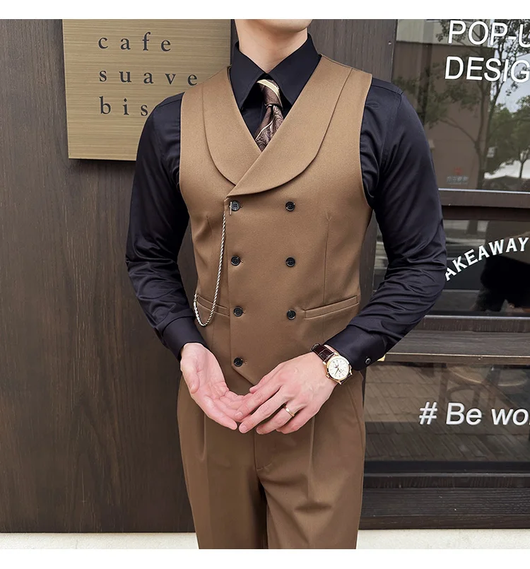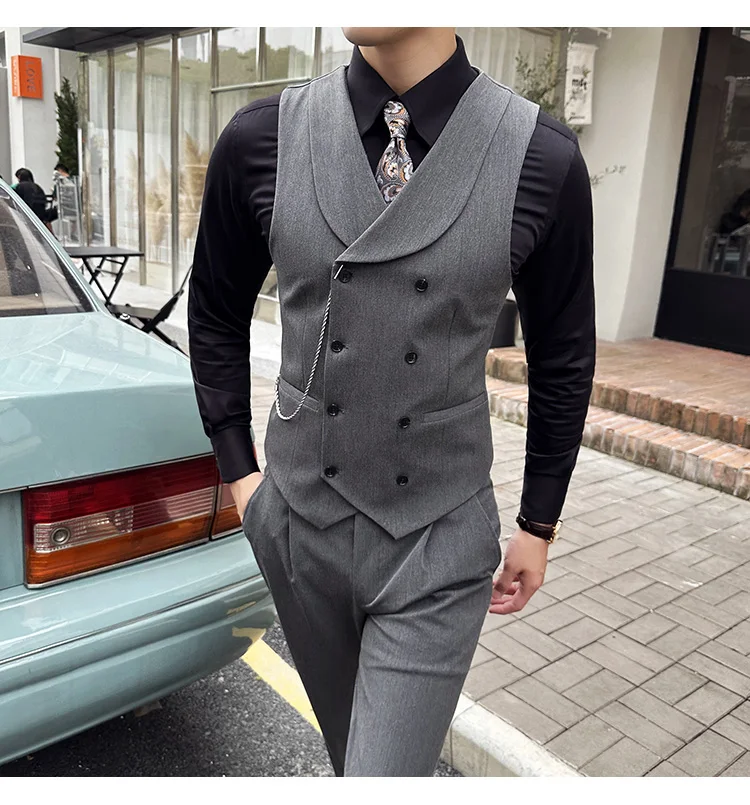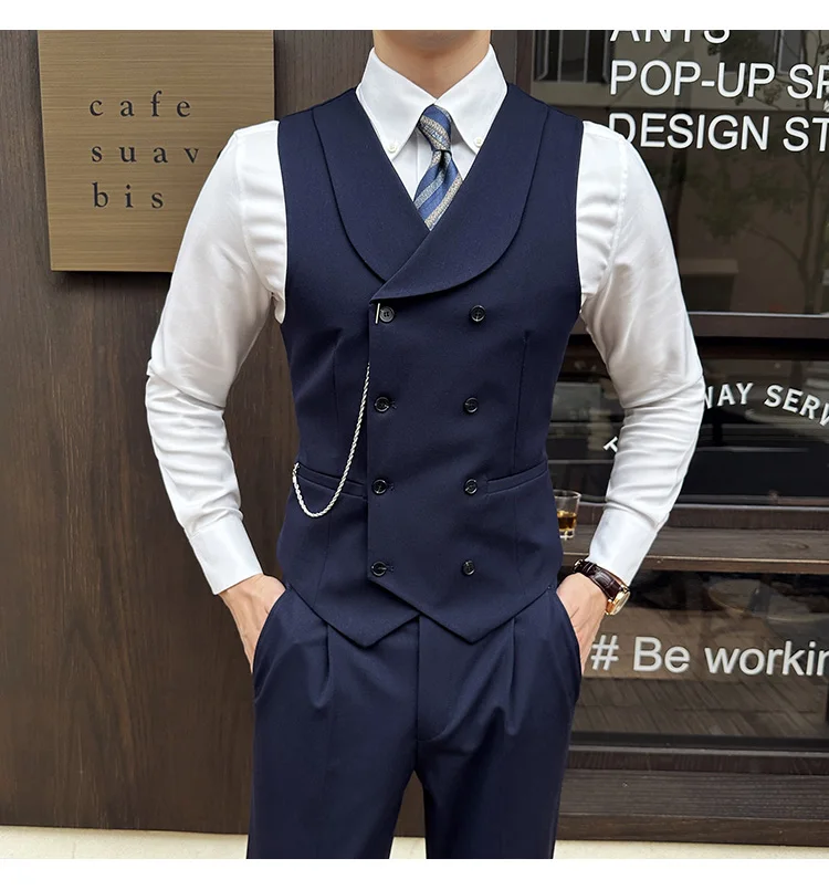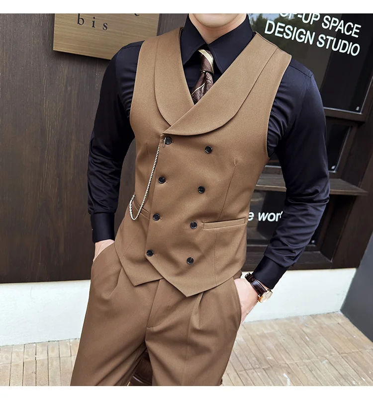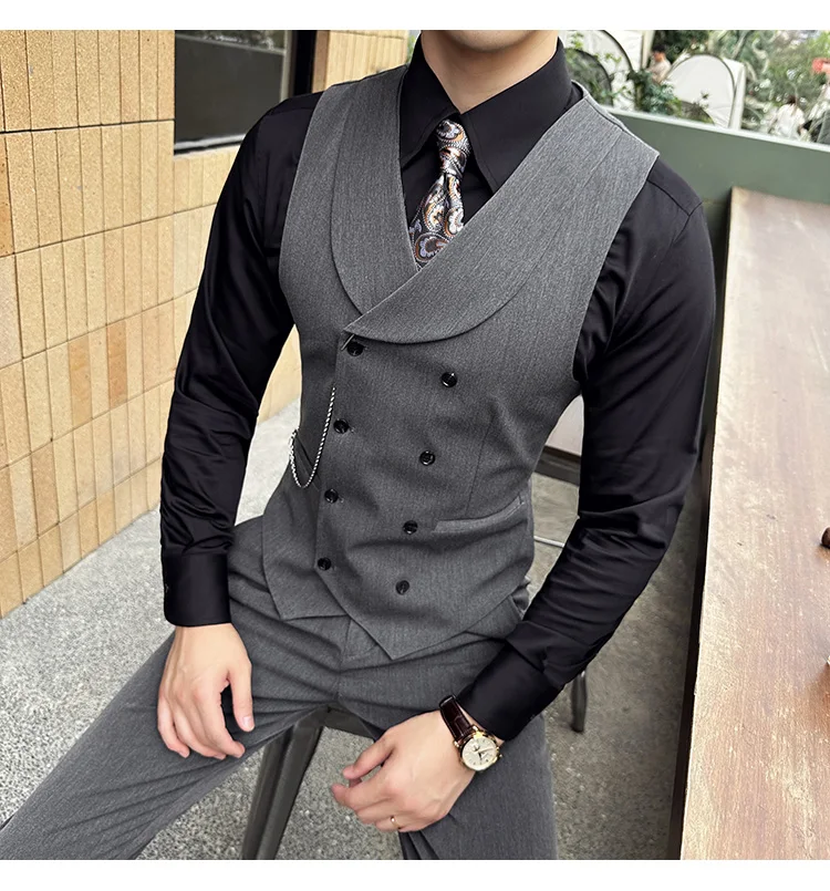 High Quality Autumn Double Breasted Suit Vest Men Business Formal Sleeveless Vest Slim Fit Wedding Groom Banquet Party Waistcoat