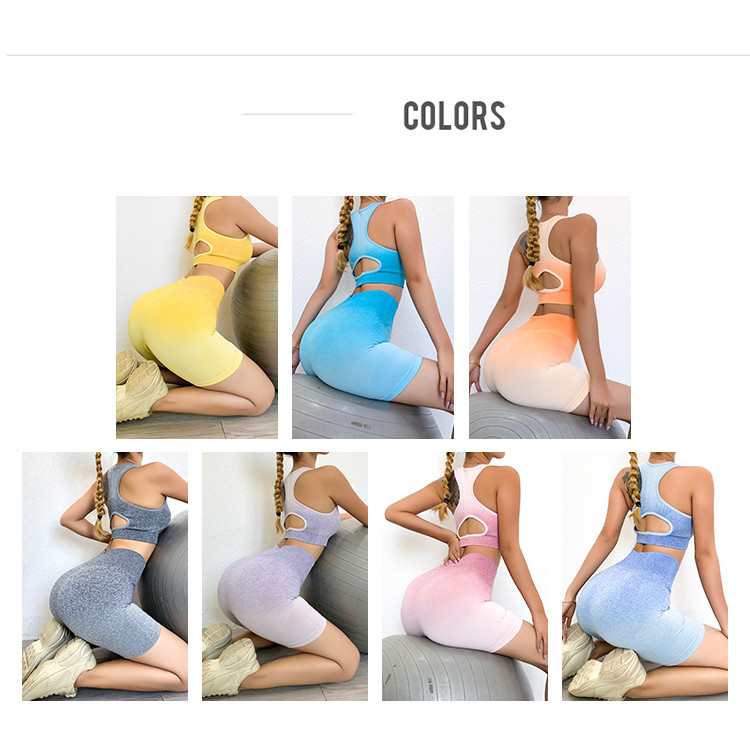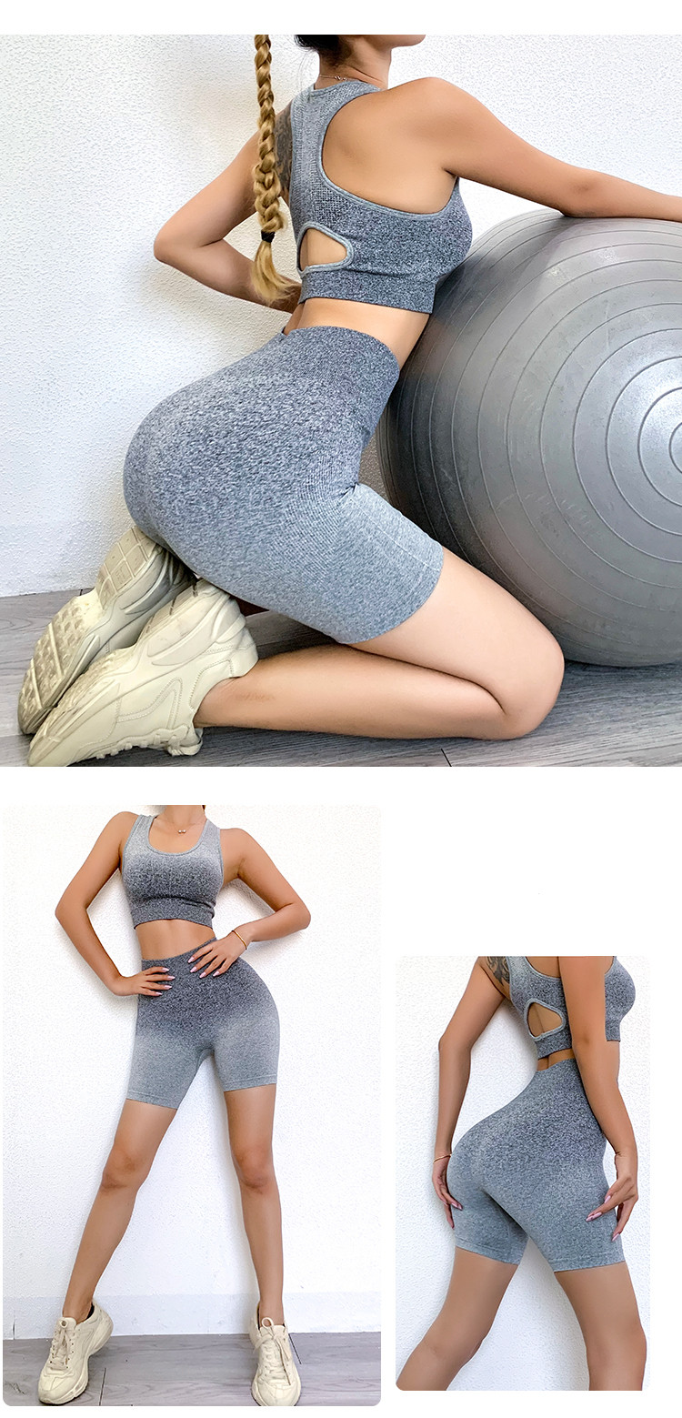 In Stock Seamless Workout Set Bra And Legging Yoga High Waist Sexy Short Set Logo Customized Women Fitness Set