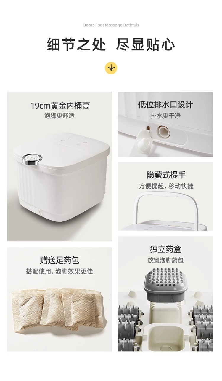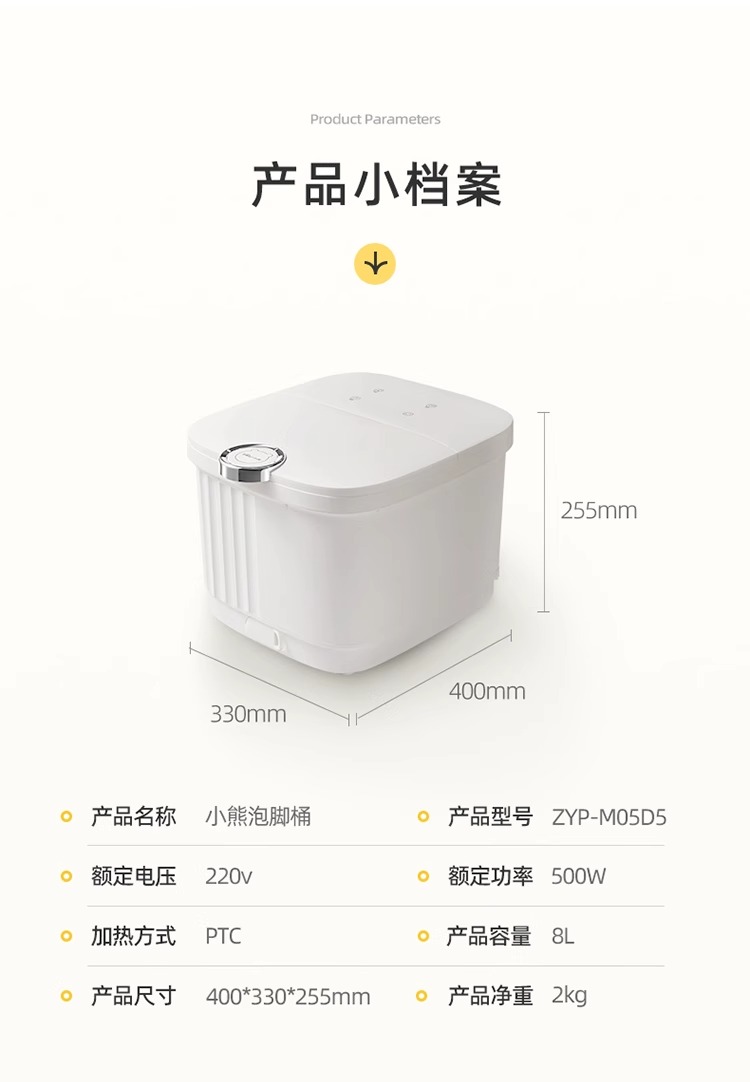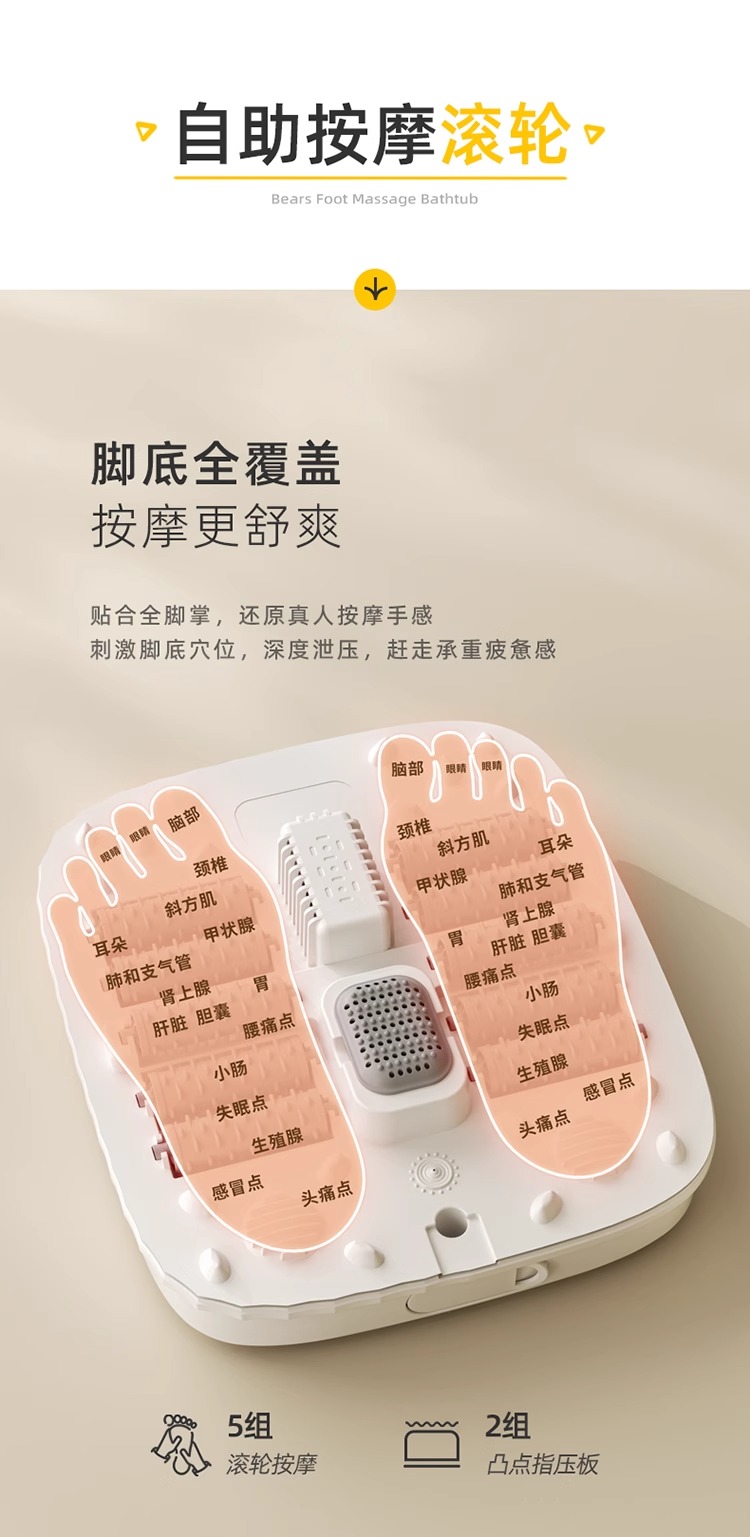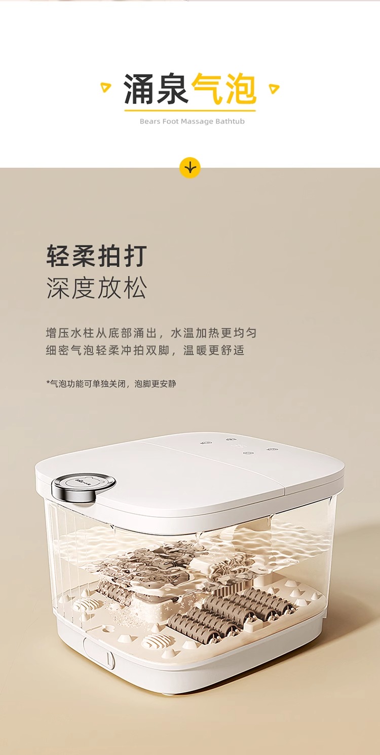 Transform Your Relaxation with the Heated Foot Spa! Why you'll love it: - Enjoy constant temperature heating for ultimate comfort. - Built-in massage nodes relieve tension and promote blood circulation. - Creates a spa-like experience in the comfort of your home. - Designed for easy use and maximum relaxation. - Perfect for unwinding after a long, tiring day.The Bear Foot Bath Barrel combines warmth, relaxation, and health features into one extraordinary foot spa. This premium foot bath offers consistent heating and soothing massage nodes that relieve muscle tension while indulging your feet in a warm embrace. Experience the joy of rejuvenation and self-care that many users rave about!To use, simply fill the tub with warm water, plug it in, and adjust the settings to your preferred temperature and massage intensity. Slip your feet in and let the soothing currents melt away your stress. Elevate your self-care routine and discover how essential this foot spa can be for your overall well-being. Treat yourself to a daily dose of relaxation and comfort today!