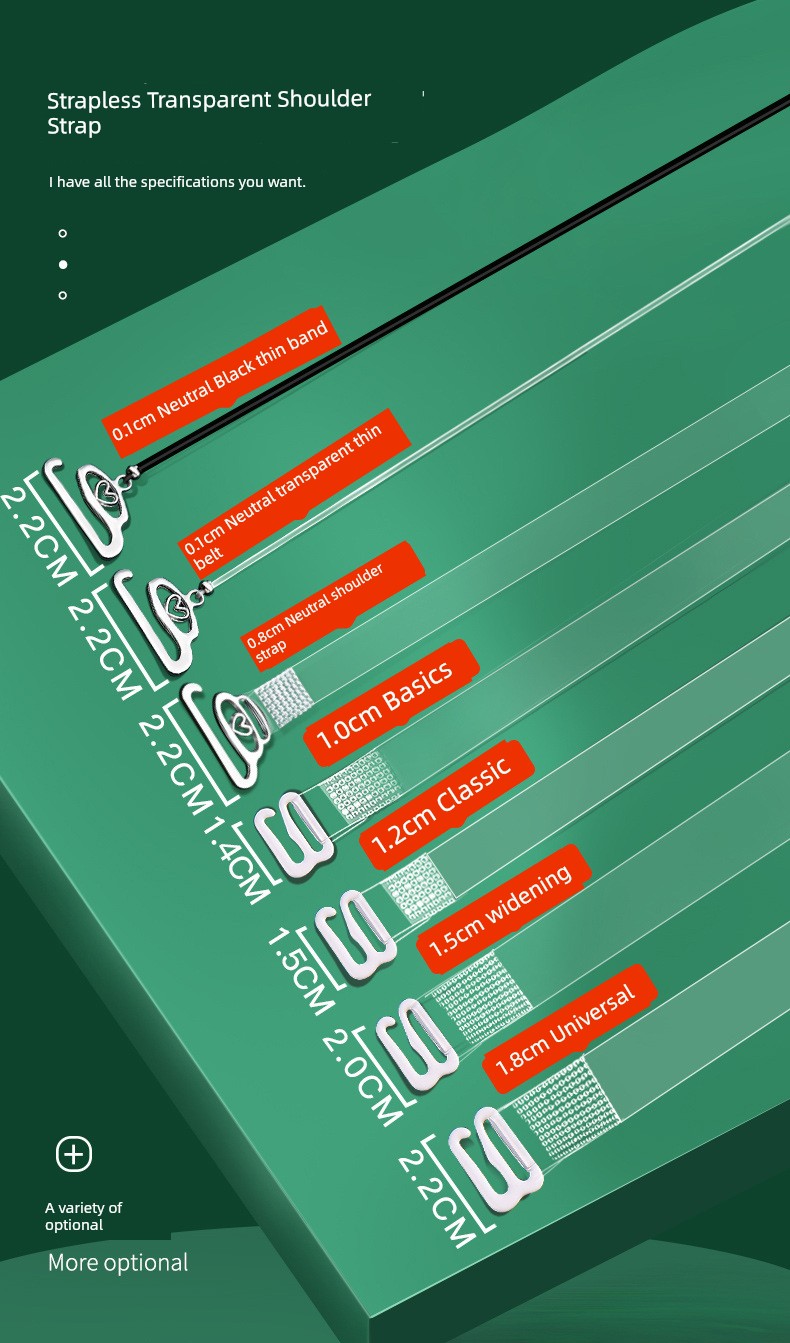 Elevate your lingerie collection with our Invisible Non-Slip Bra Strap designed for ultimate comfort and discretion. Why you'll love it: - Invisible design ensures a seamless look under all your outfits. - Non-slip technology keeps your strap securely in place all day long. - Customizable with replaceable straps to fit your style. - Thin profile is perfect for pairing with tank tops and dresses. - Made from premium, high-quality transparent material for exceptional comfort. This innovative strap replaces traditional bra straps, enhancing your stylish look without sacrificing support. Perfect for everyday wear or special occasions, it adds effortless elegance to your wardrobe. How to use: Simply attach the strap to your favorite bra and adjust it for the perfect fit. Upgrade your lingerie game with this must-have accessory for a chic and confident silhouette!