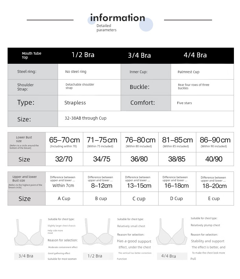 Experience the ultimate in comfort and style with our Invisible Strapless Push-Up Bra, expertly designed for a seamless fit and alluring lift. Why you'll love it: - Push-up design enhances your natural shape. - Seamless construction ensures a smooth appearance under clothes. - Non-slip technology keeps it securely in place. - Perfect for all occasions, from everyday wear to special events. - Available in versatile colors to match any outfit. Crafted with premium materials, this wrap bra features an innovative beauty back design, perfect for small busts seeking a boost. The soft fabric ensures all-day comfort while maintaining an invisible feel, making it a must-have in your lingerie collection. To wear, simply wrap it around your body, adjust the fit to your liking, and enjoy the confidence that comes with a perfect fit. Don’t miss out on this exclusive, limited-time offer. Elevate your style with our best-selling strapless bra today!