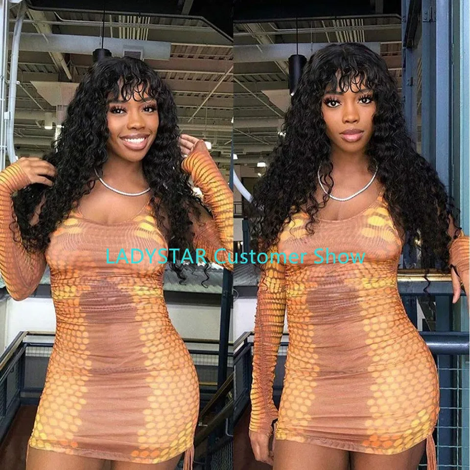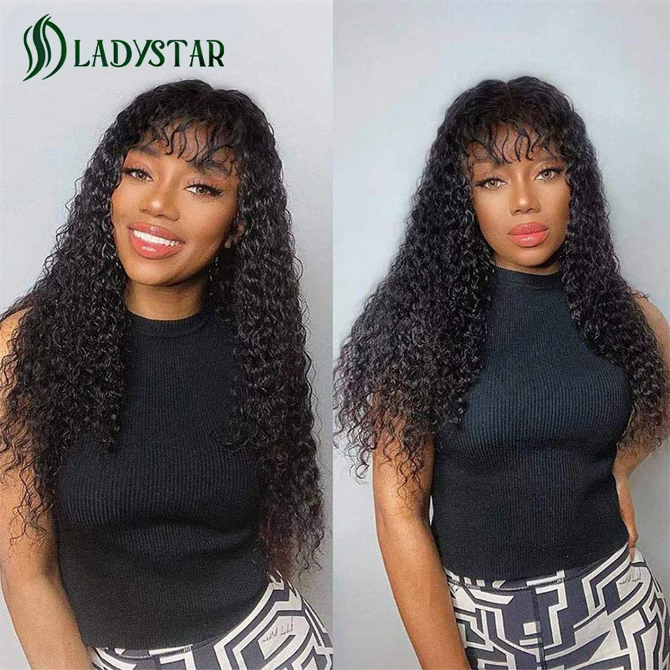 Jerry Curly Human Hair Wigs With Bangs Brazilian Water Wave Wigs For Women Curly Human Hair Wigs Full Machine Made No Lace Wig