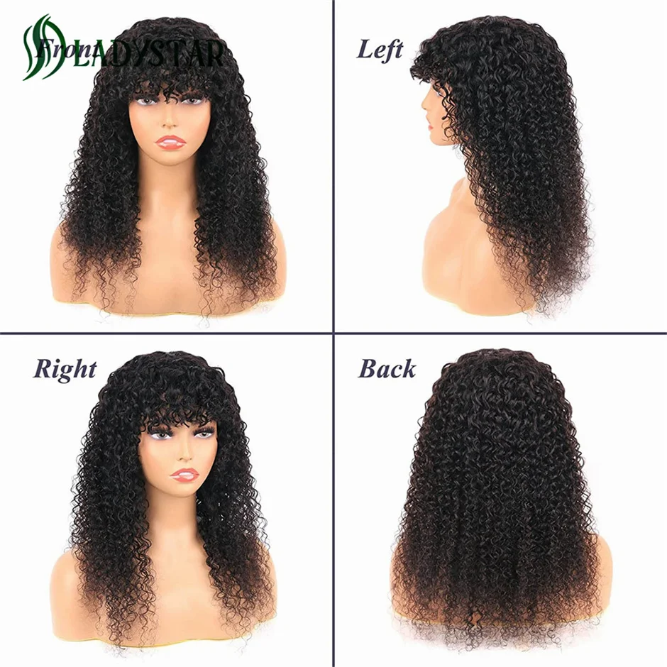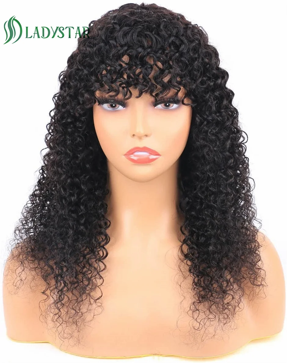 Jerry Curly Human Hair Wigs With Bangs Brazilian Remy Curly Human Hair Wigs For Women Full Machine Made No Lace Curly Fringe Wig