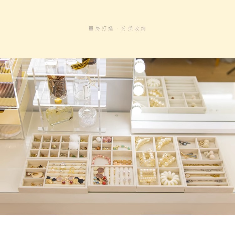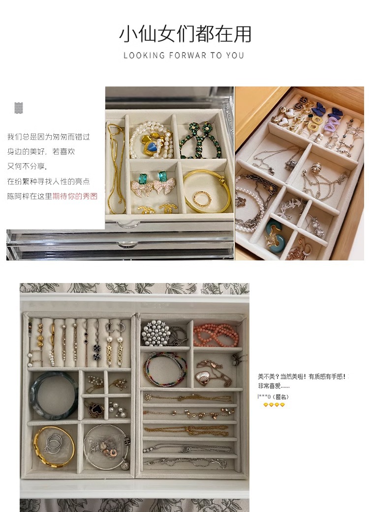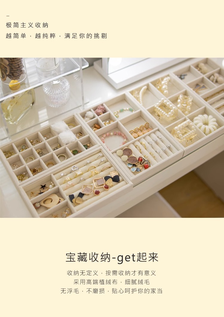 Jewelry Box Storage Box Drawer Cabinet Household Earrings Stud Earrings Necklace Ring Jewelry Flannel Jewelry Box Tray