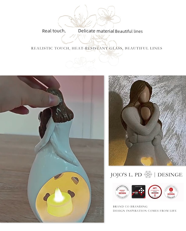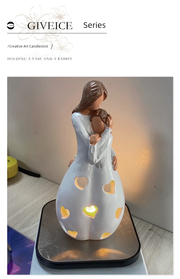 Jojo's L. Pd. Giveice. Candlestick Resin Statue Mother's Day Gift Hug Desktop | Give Ice