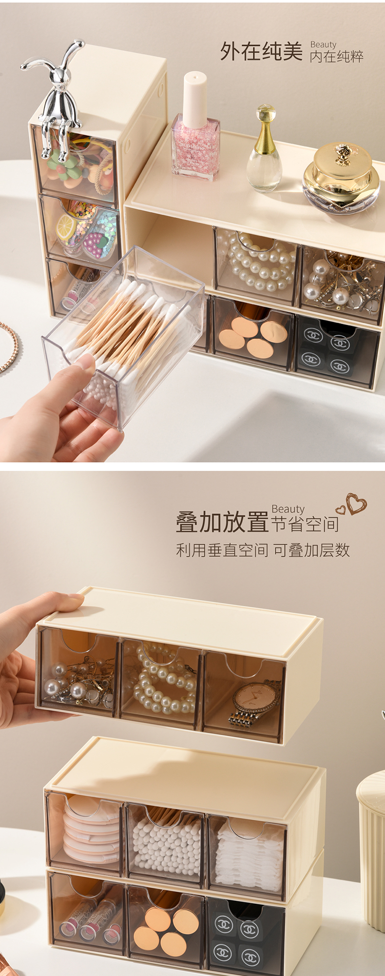 Jujiajia Cosmetics Storage Box Desktop Skin Care Products Dressing Table Storage Rack Multi-Layer Drawer Jewelry Organizing Box