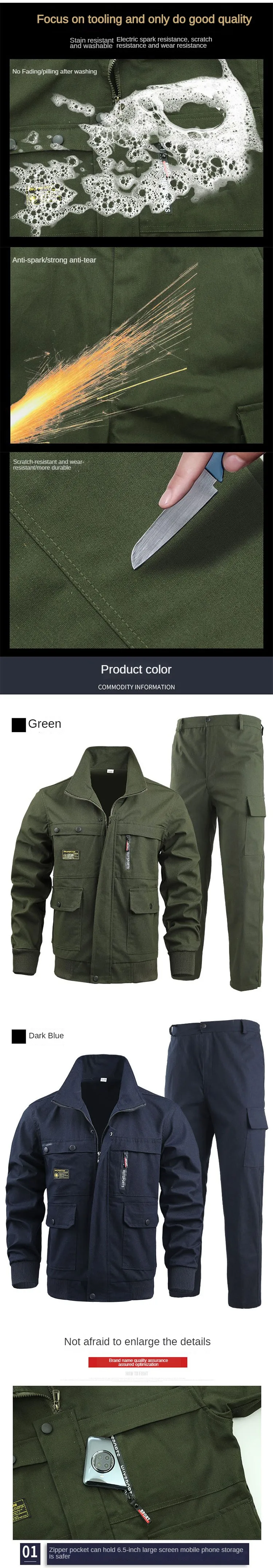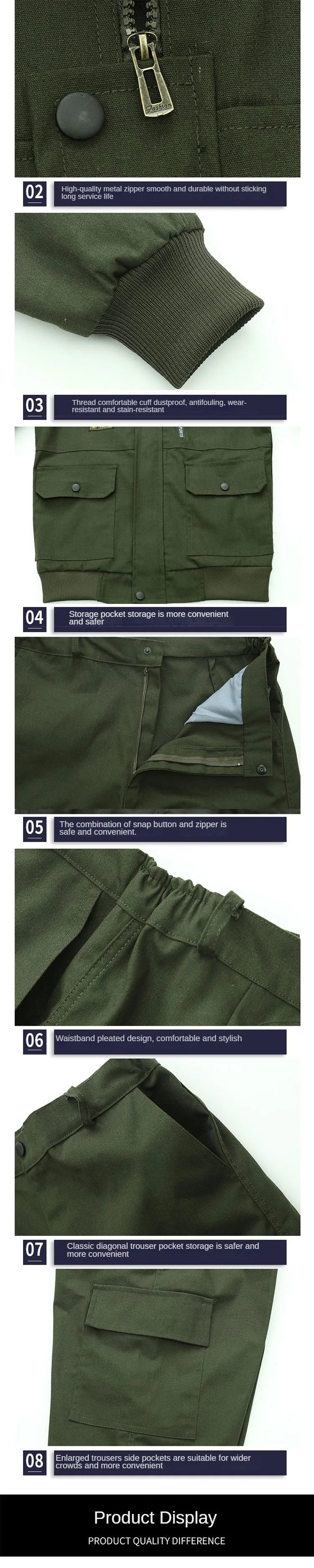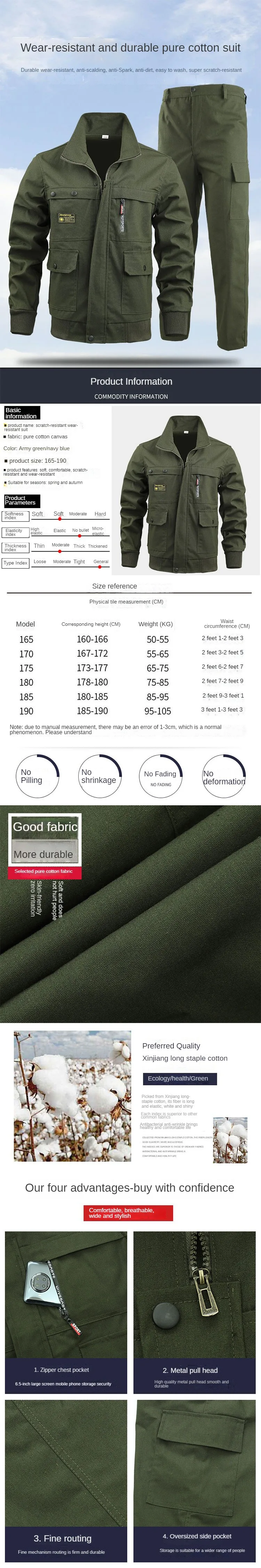 Labor Protection Work Clothes Solid Color Cotton Cloth Fire Resistant Tear Resistant Welding And Maintenance Men Work Clothes