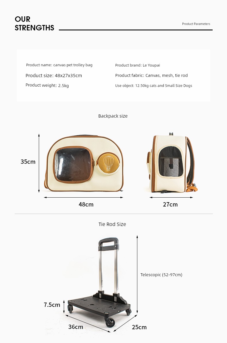 Travel in comfort with our Large Capacity Cat Trolley Bag, designed for the ultimate convenience and your pet's well-being. Why you'll love it: - Spacious design accommodates pets of all sizes. - Anti-stress features ensure a calm travel experience. - Durable, high-quality materials perfect for on-the-go adventures. - Versatile use as a trolley or backpack for convenience. - Ideal for both cats and small dogs. This premium pet trolley bag combines functionality with comfort, providing a secure and cozy space for your furry friend during travel. It's crafted with high-quality materials that ensure longevity while being gentle on your pet. To use, simply fit your pet inside the padded compartment, secure them with the built-in safety harness, and use the adjustable straps for easy carrying. Perfect for trips to the vet, vacations, or everyday outings - make travel enjoyable for both you and your pet! Limited time offer available, so grab yours today!