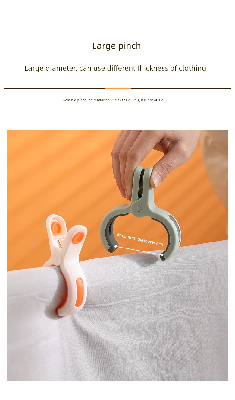 Secure your quilts with our Large Windproof Quilt Clips, designed to withstand the wind while keeping your bedding in place! Why you'll love it: - Heavy-Duty Windproof Design for Maximum Security. - Non-Slip Grip Keeps Your Quilts Secure. - Lightweight and Easy to Use for All Drying Needs. - Perfect for Outdoor Drying or Everyday Home Use. - Cute and Functional Design to Brighten Your Laundry Routine. Crafted from high-quality plastic, these durable clips are built to handle windy conditions while remaining lightweight for easy use. Their innovative design ensures a secure hold without damaging your fabrics, making them ideal for indoor and outdoor drying. To use, simply clip them to the edges of your quilt or bedding, spacing them evenly to prevent any unwanted flapping from breezes. Enjoy a worry-free drying experience and elevate your laundry routine with these premium, perfect-fit quilt clips—get yours today!