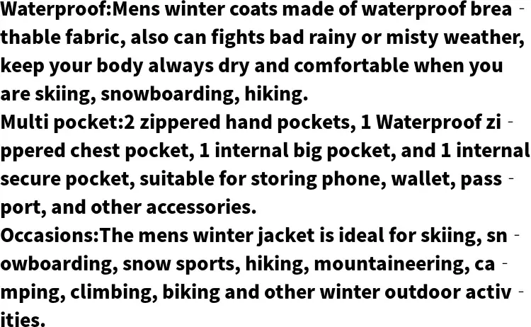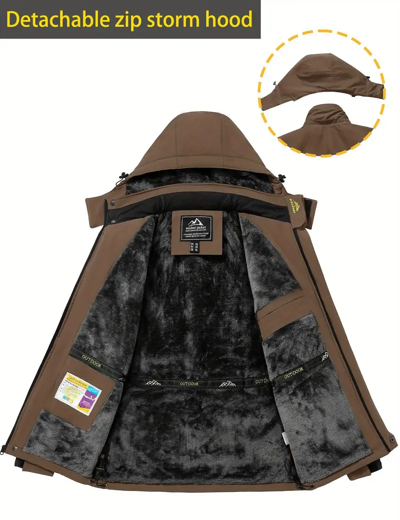 Long Sleeve Men's Winter Outdoor Jacket, Detachable Hood, Windproof, Performance Warm, Breathable, Multi Pockets, Comfy Fabric, Wear Resistant, Suitable for Snow Sports, Casual Climbing, Fishing, and Camping in Cold Region