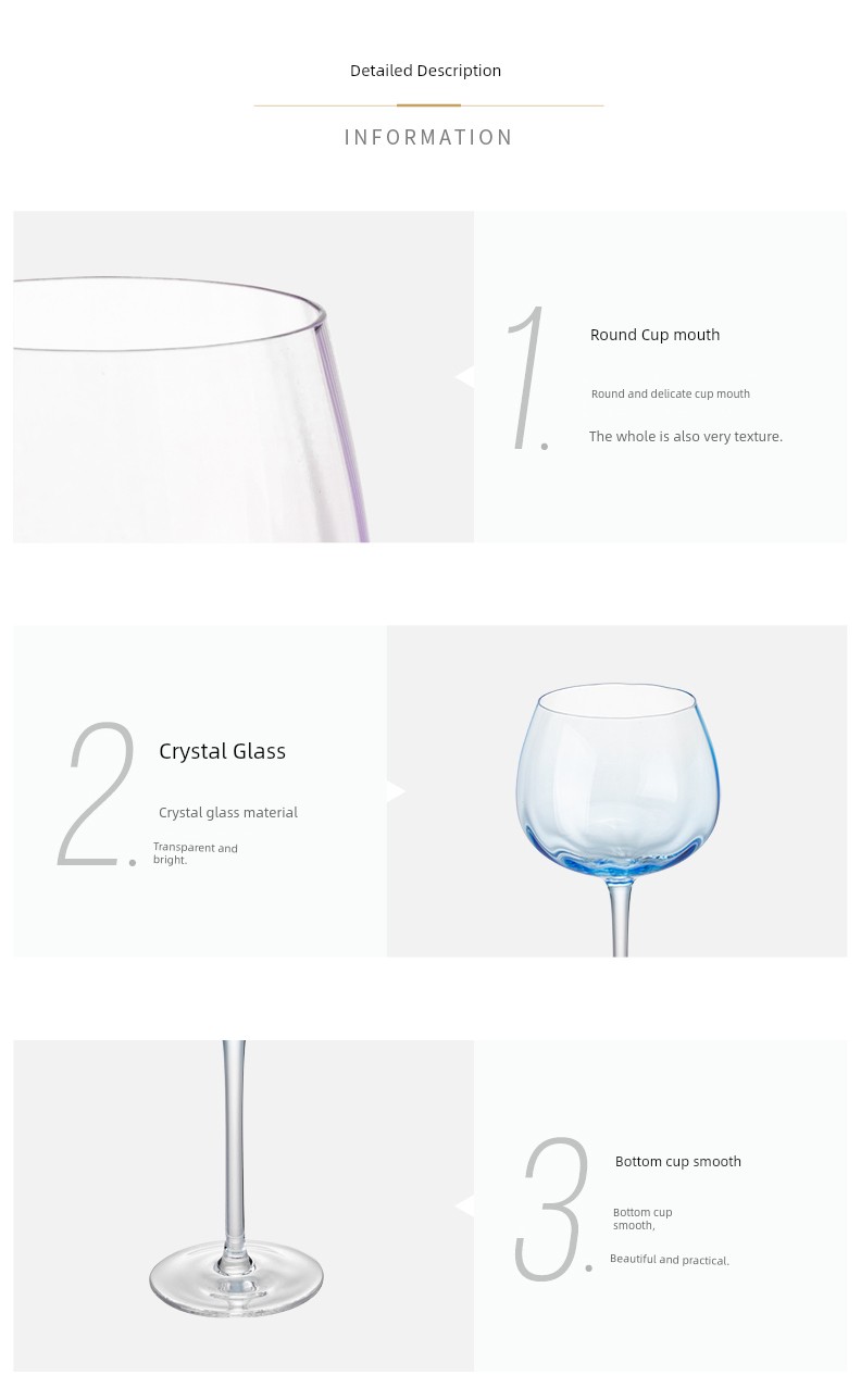 Imagine a cozy evening at home, the warm glow of candlelight dancing off the elegant curves of your new wine glasses. Introducing our Luxury Crystal Rainbow Wine Glass Set—a perfect blend of sophistication and charm designed for modern housewives who appreciate the finer things in life. Each sip from these exquisite glasses transforms your ordinary moments into extraordinary memories. These stunning goblets capture the essence of modern design while celebrating a timeless elegance that complements any decor. Crafted from premium crystal, they shimmer in a spectrum of colors, reflecting light in the most enchanting way. It’s not just a drinkware; it’s a statement piece that enhances your dining experience and impresses your guests. But the beauty of this set goes beyond aesthetics. Each glass is thoughtfully designed to enhance the flavors of your favorite wines and champagne, allowing you to savor every note and nuance. Whether you're hosting a formal dinner party or enjoying a casual evening at home, these glasses will elevate the experience, making every toast a celebration of connection and joy. Picture yourself pouring a rich, velvety red wine into these magnificent goblets, the color glistening as you share stories over dinner. The weight of the glass feels just right in your hand, and as you lift it to clink glasses, you can practically hear the laughter and warmth filling the room. With every sip, you’re not just drinking wine—you’re creating cherished moments with family and friends. Don’t just take our word for it; our delighted customers rave about this glass set:\ 'These rainbow wine glasses are truly a work of art! They made our anniversary dinner feel incredibly special.' - Lisa K.\ 'I’ve never had such compliments on my dinnerware before! These glasses are a must-have for anyone who loves to entertain.' - Maria S. Now is the time to bring elegance and sophistication into your home. Don’t miss out on the chance to own the Luxury Crystal Rainbow Wine Glass Set. Elevate your gatherings, charm your guests, and toast to life’s beautiful moments—grab your set today and experience the magic for yourself!