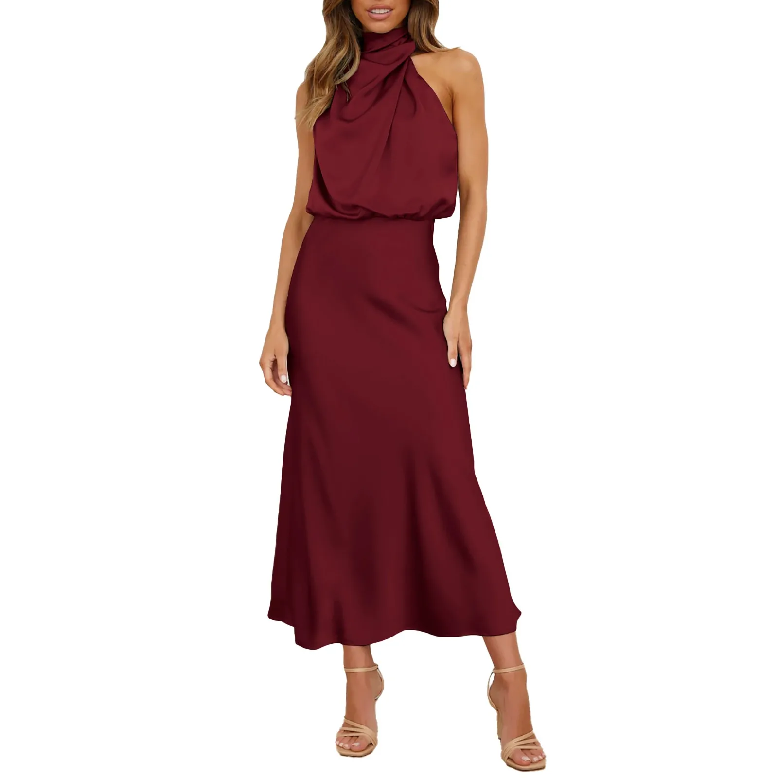 MATCHING STYLE: The Solid Color Flowy Satin Dress Is Easy To Pair With Boots, High Heels, Sandals, Hats, Necklace And Earrings. The Sexy Sleeveless Dress Is Very Suitable For Both Formal And Casual Occasions, Such As Cocktail, Banquet, Wedding, Prom, Evening, Streetwear, Photoshoot, Dating, Club, Daily Wear. Chic And Fashion Style