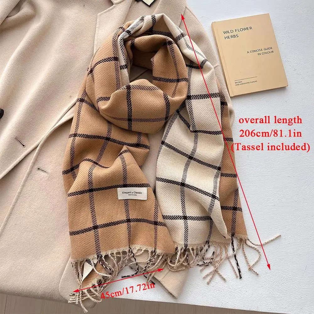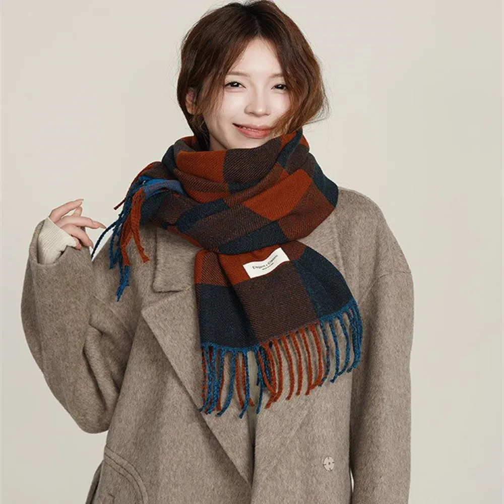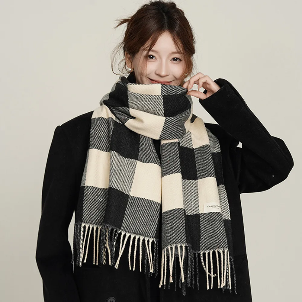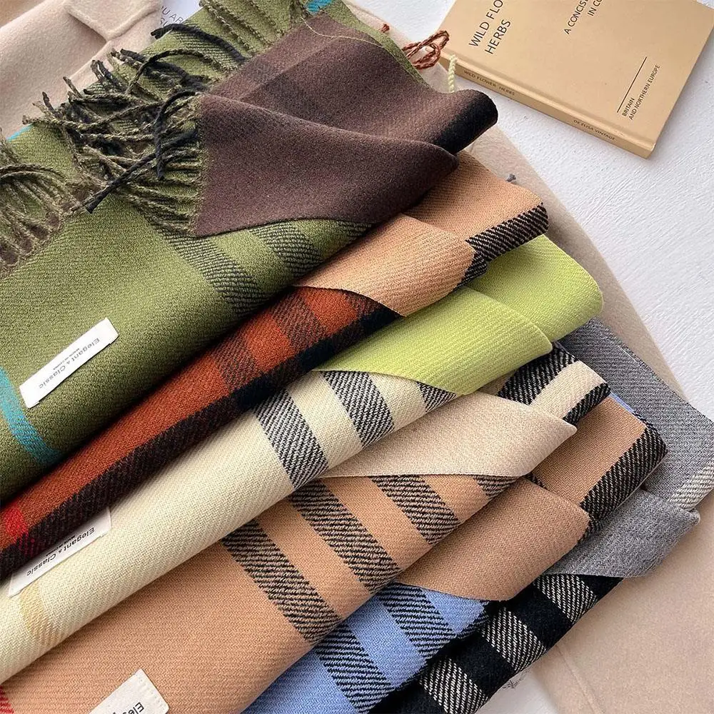 Luxury Winter Wool Scarf Women Cashmere Warm Shawl And Wraps With Tassel Men Warm Scarf Fashion Plaid Pashmina Shawl Neckerchief