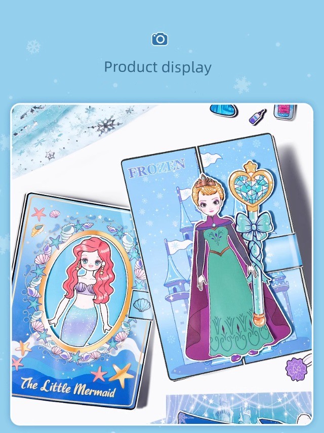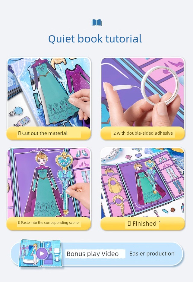 Imagine a world where creativity knows no bounds, where your child can bring their favorite characters to life with just the flick of a wrist. Introducing the Magnetic Dress-Up Quiet Book, a captivating toy designed to inspire imaginative play in every girl. This hands-on adventure is more than just a book; it's a canvas for dreams and storytelling, where every page invites exploration and creativity. Created with love and attention to detail, our quiet book is crafted to eliminate the mess of cutting and gluing, allowing your child to participate in hands-on activities without the traditional hassle. Featuring beloved characters like Elsa from Frozen, this DIY handmade dress-up journey helps children express themselves as they mix and match three-dimensional stickers creating countless outfits for their favorite princesses and magical mermaids. The magic truly lies in its interactive design. With each magnetic force snap and style change, your child's imagination will soar to new heights. Feel the excitement as they dress up Elsa with colorful gowns, shimmering accessories, and even long flowing hair! The satisfaction of creating is not just fun; it’s incredibly rewarding. Beyond entertainment, it promotes fine motor skills, creativity, and problem-solving abilities—all while keeping your little ones engaged. Close your eyes and picture a peaceful afternoon, the sun filtering through the window as your child flips through their quiet book. The sounds of laughter fill the air as they proudly showcase their creations, eagerly sharing their stories and adventures. Each artful page serves as a reminder of their independence and creativity, turning screen time into playtime full of exploration and wonder. But you don’t have to take just our word for it. Hear from other parents like you: \