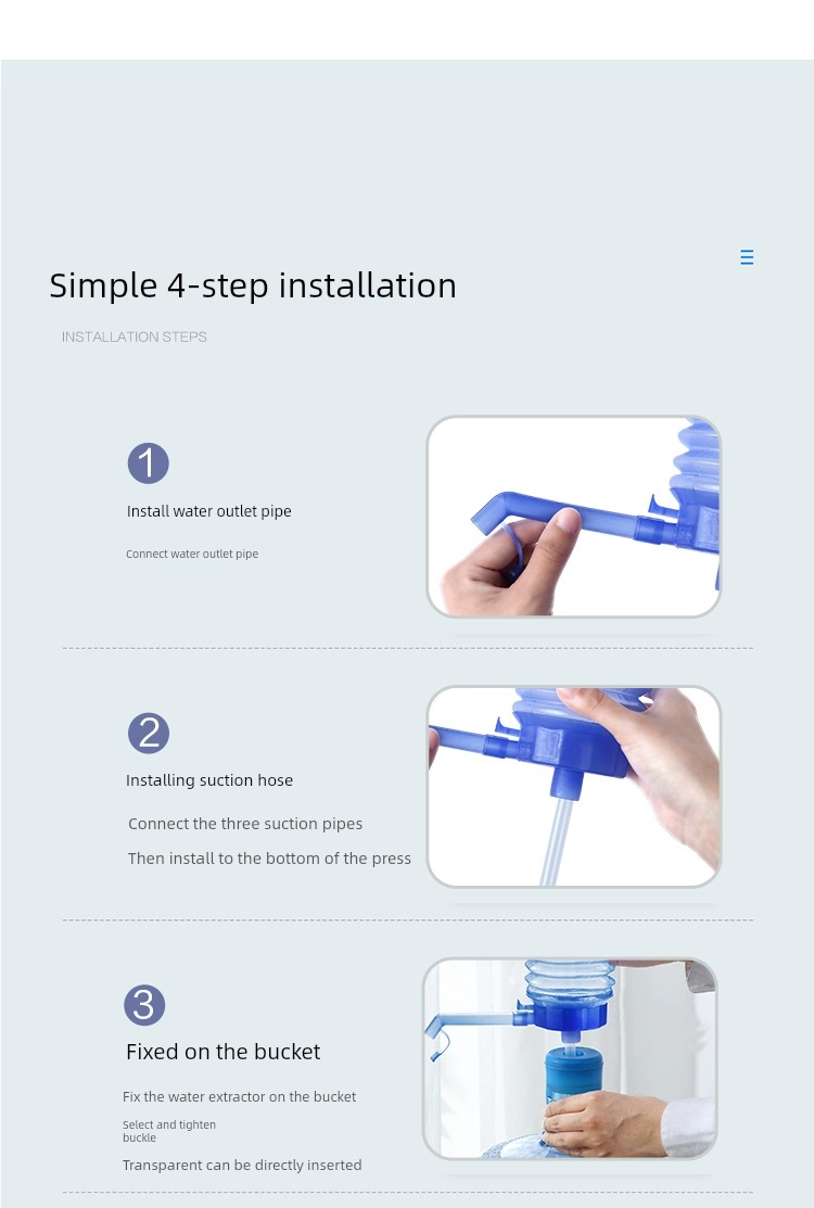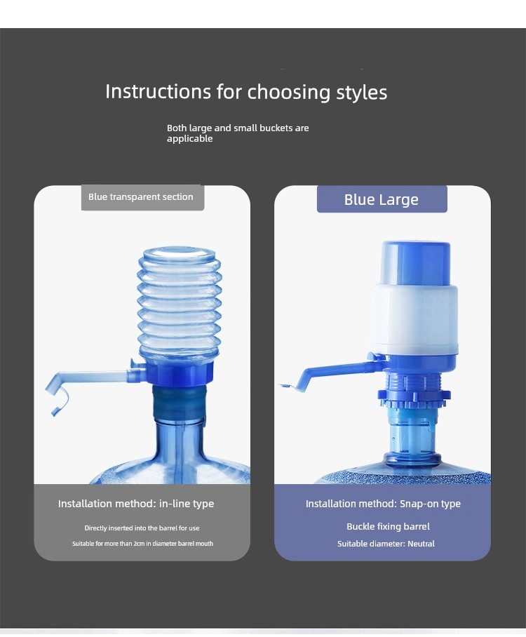 Imagine serving ice-cold, pure mineral water at your family's dinner table, feeling the joy of knowing they have access to healthy hydration, all without the fuss of heavy water bottles. Introducing the Manual Pump Water Dispenser – your solution for convenient, efficient hydration right at home. Born from the need for ease and practicality, this innovative water device redefines how you dispense water. It caters to those who want clean, refreshing water without the hassle of electricity or complicated setups. Perfect for homes, offices, or even outdoor picnics. The design centers around simplicity and effectiveness. With just a few pumps, you can effortlessly fill your glasses with clean, filtered water while keeping the environment in mind. Made with high-quality, safe materials, this manual pump guarantees that your family enjoys every sip of mineral-rich water without worrying about contaminants. Feel the satisfaction of using this user-friendly pump, which requires no installation and is incredibly easy to operate. Picture yourself in your kitchen, just a gentle press away from refreshing hydration. The ergonomic design supports your hand, making every dispensing experience seamless and enjoyable. But don’t just take our word for it; hear from the delighted customers who have transformed their hydration game with the Manual Pump Water Dispenser. 'I love how easy it is to get water for my kids. They're drinking more, and I feel good knowing it's pure!' raves Anna G. Another happy user, John M., shares, 'It's perfect for our family camping trips – no heavy bottles and no mess!' Seize the opportunity to make hydration a breeze in your home. Don’t miss out on the Manual Pump Water Dispenser – your path to healthy, delicious water awaits. Order yours today and take a step towards effortless hydration!