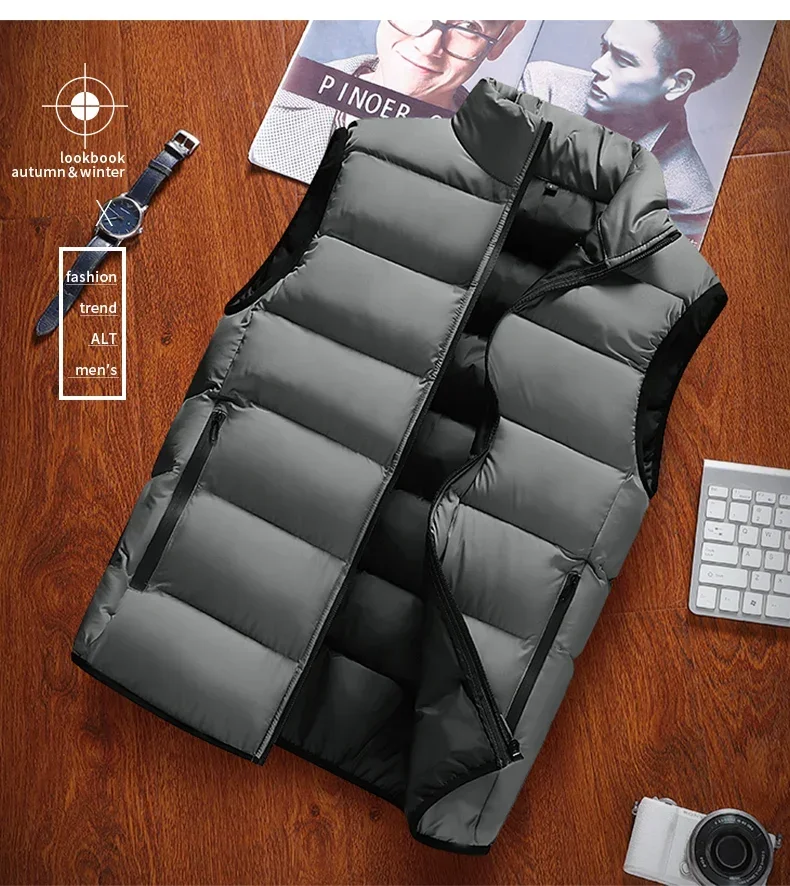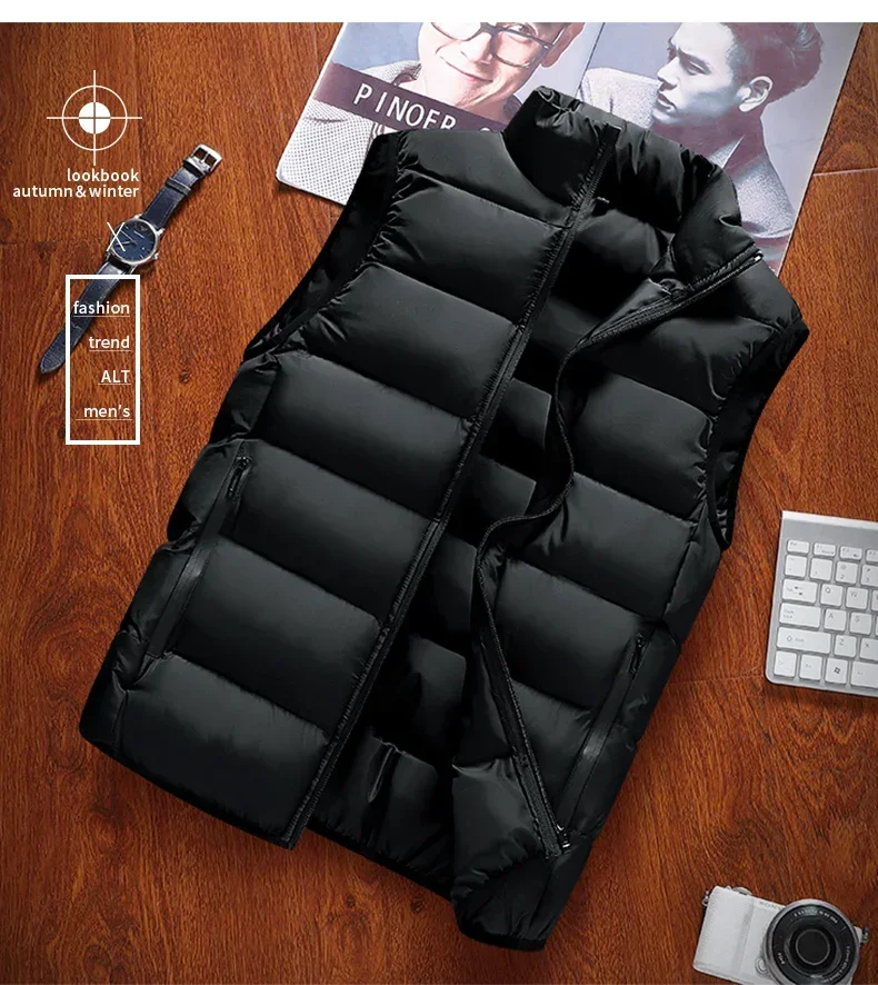 Men Vest Windproof Vest Men Jacket Sleeveless Vest Winter Jacket Casual Coat Men down Cotton Warm Thicken Waistcoat thick gilet