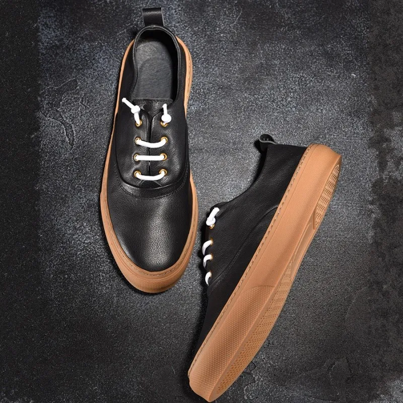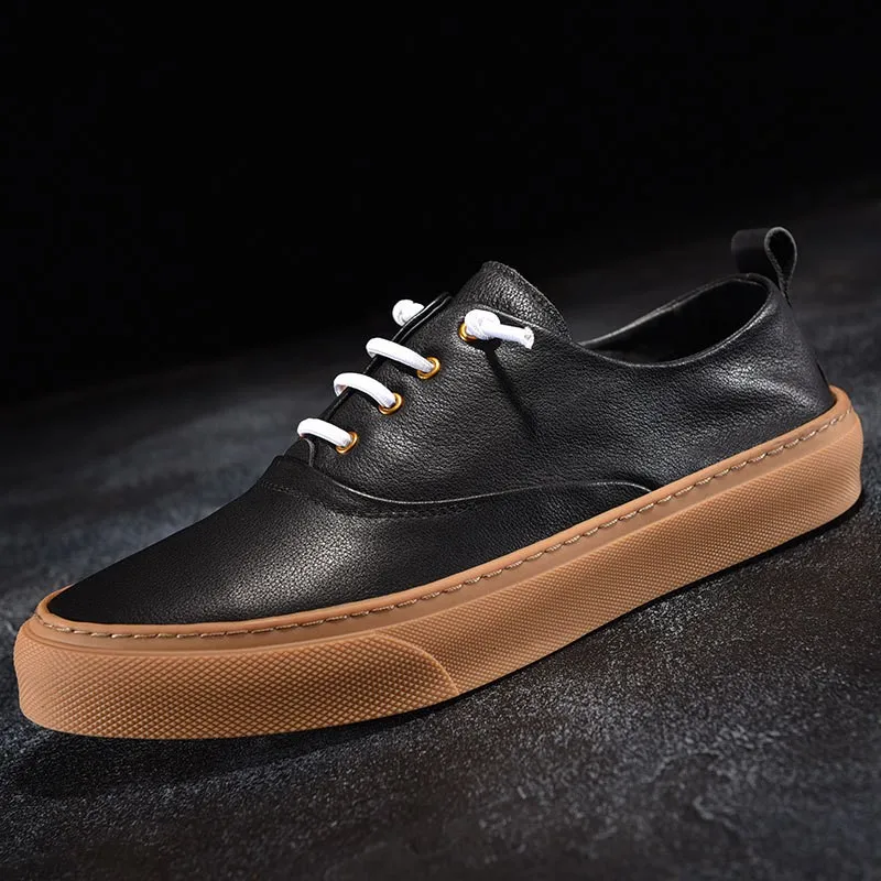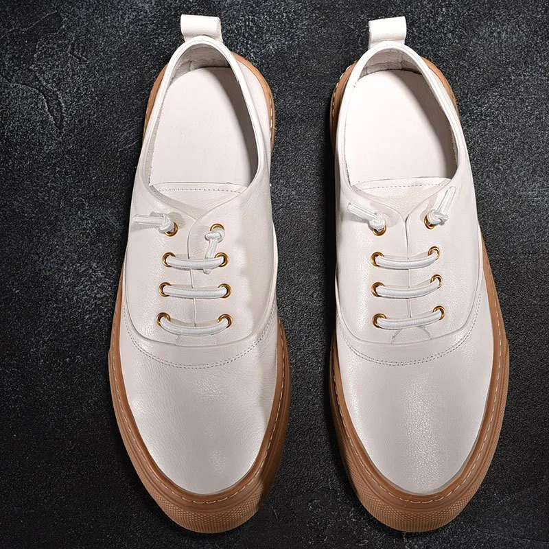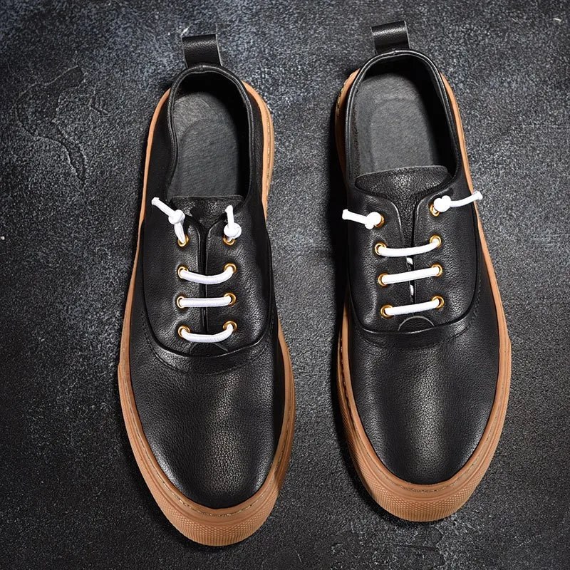 Mens Casual Active Shoes Elastic Band Cowhide Genuine Leather Loafers New Summer Footwear Shallow Breathable Platform Sneakers