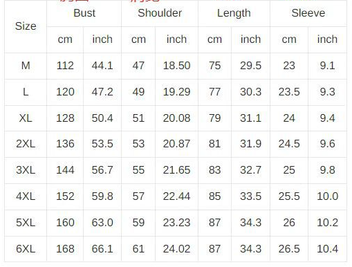 Size: S / M / L / XL / XXL / 3XL / 4XL / 5XL/6XL
