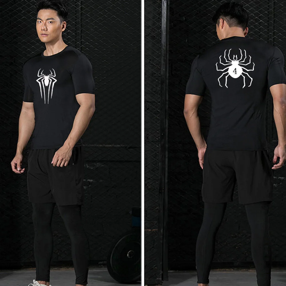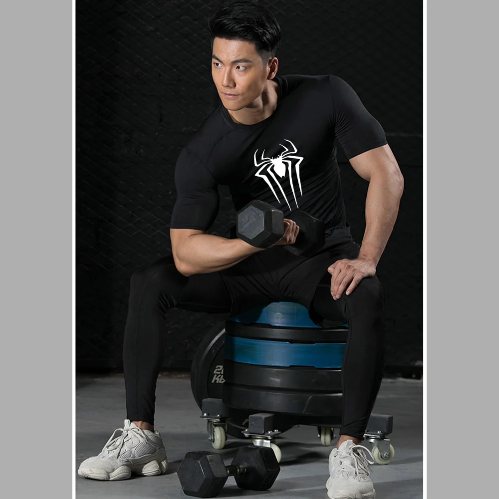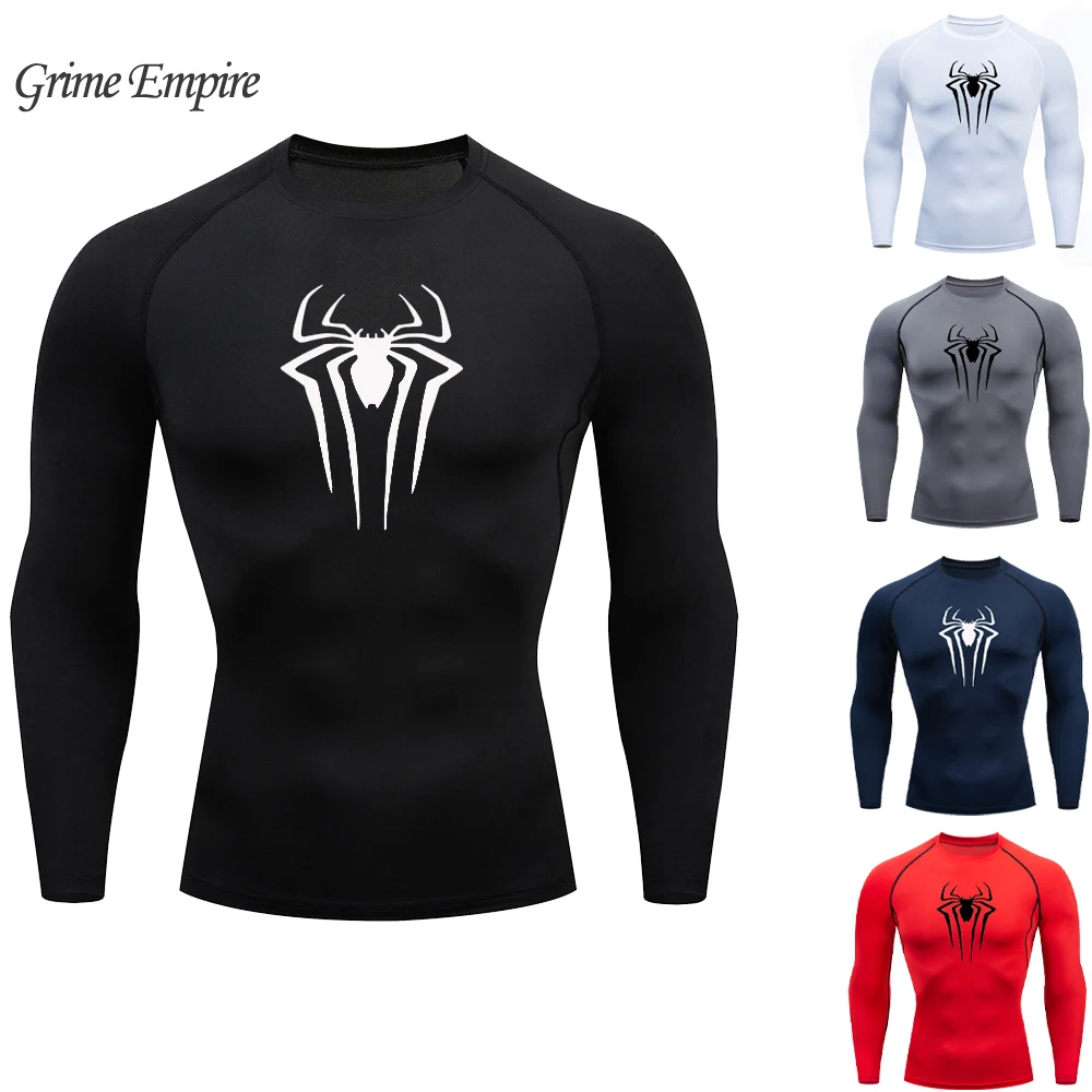 Men's Compression Shirt Fitness Workout Anime Print Sport Tight Gym TShirts Athletic Quick Dry Tops Tee Summer Male