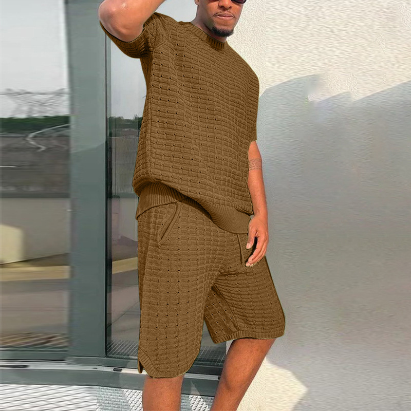 Men's Summer Suit Fashion Loose Men 2 Pieces Outfit Summer Hippie Shirt And Short Set