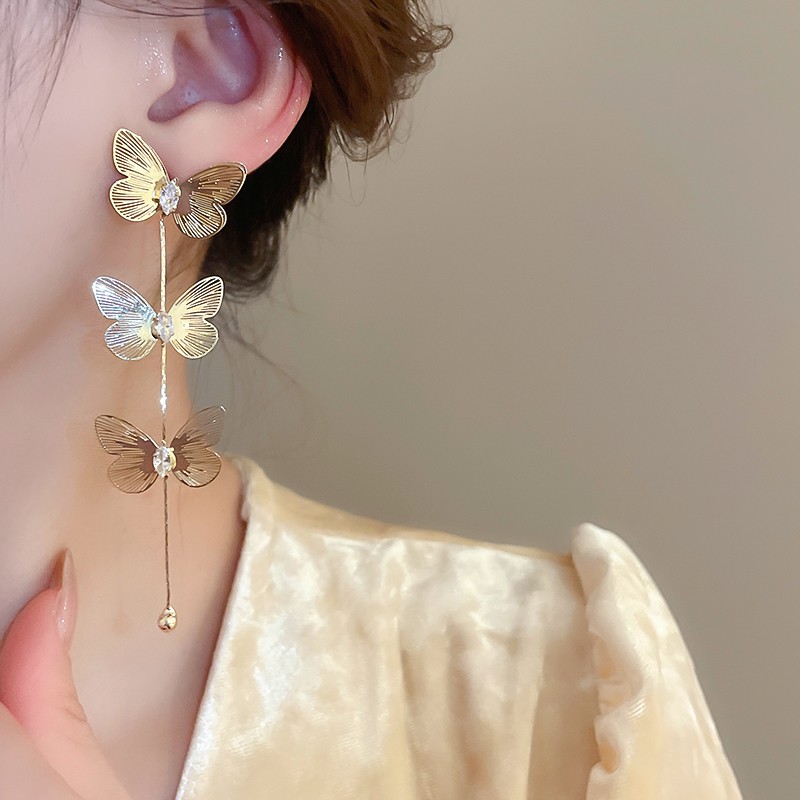 Elevate your style with our stunning Metallic Butterfly Long Tassel Earrings that combine elegance and trend-setting design. Why you'll love it: - Eye-catching metallic finish adds a touch of glamour. - Elegant butterfly design perfect for any occasion. - Lightweight and comfortable for all-day wear. - Long tassels create a striking silhouette. - A must-have accessory for the modern woman. Crafted from high-quality materials, these earrings feature a luxurious metallic retro cut-out design that captures attention while remaining accessible to all. Perfect for dressing up a casual outfit or adding flair to an evening look, they're the ideal statement piece for your jewelry collection. To wear, simply slide the hook into your earlobe for a secure fit, and enjoy the graceful movement of the tassels as you shine on every occasion. Don't miss out on this exclusive accessory—make these your new favorite earrings today!