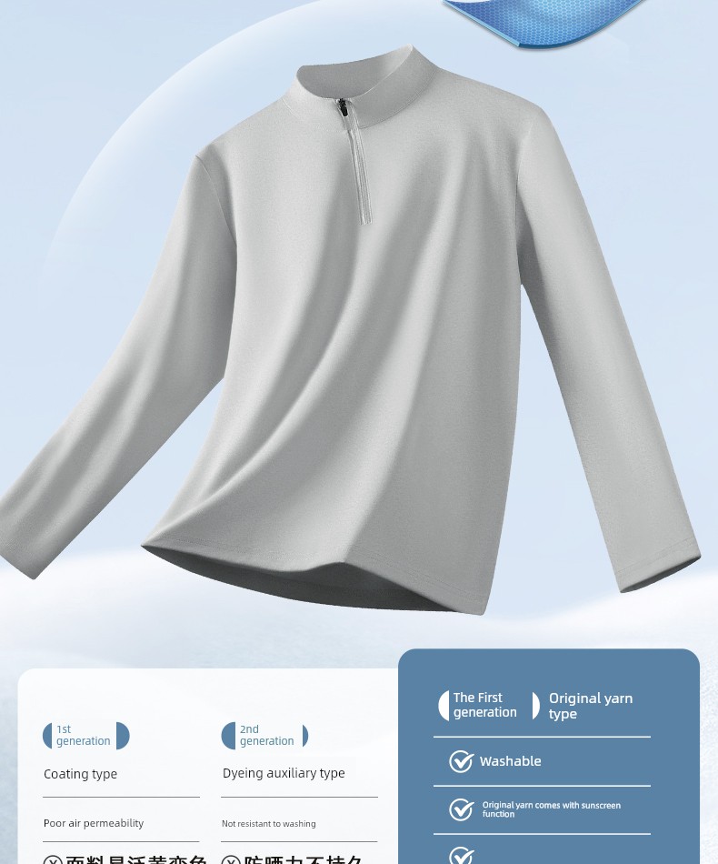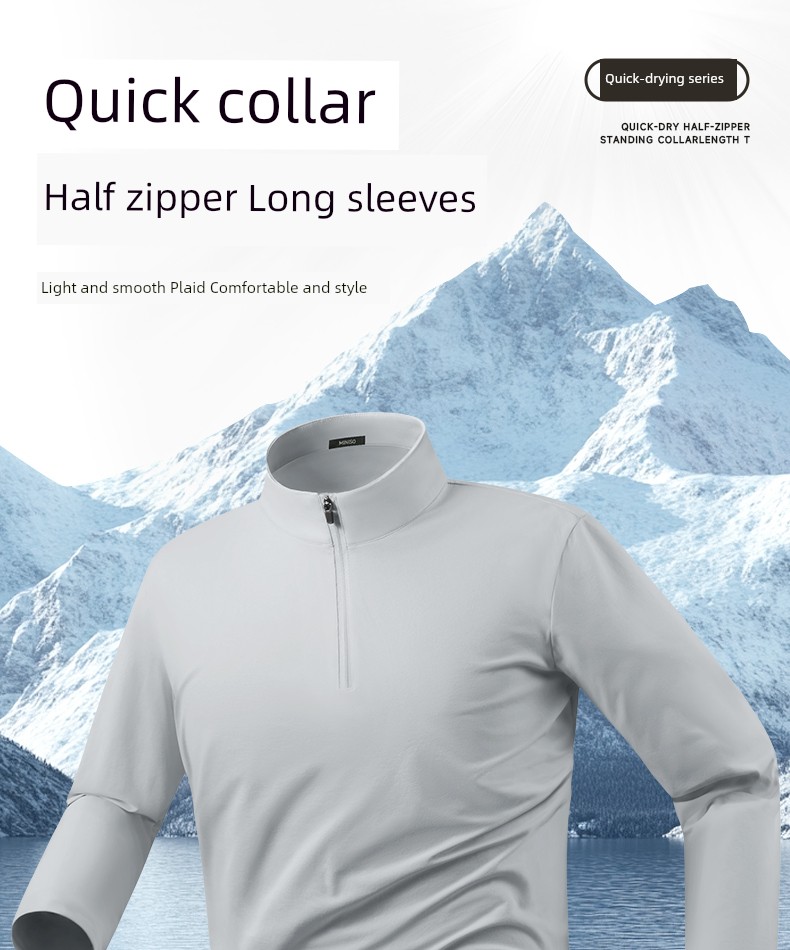 Miniso/MINISO Men's Long Sleeves Spring and Summer Sun Protection Half Zipper T-Shirt Sports Students Running Quick Drying Clothes Men a