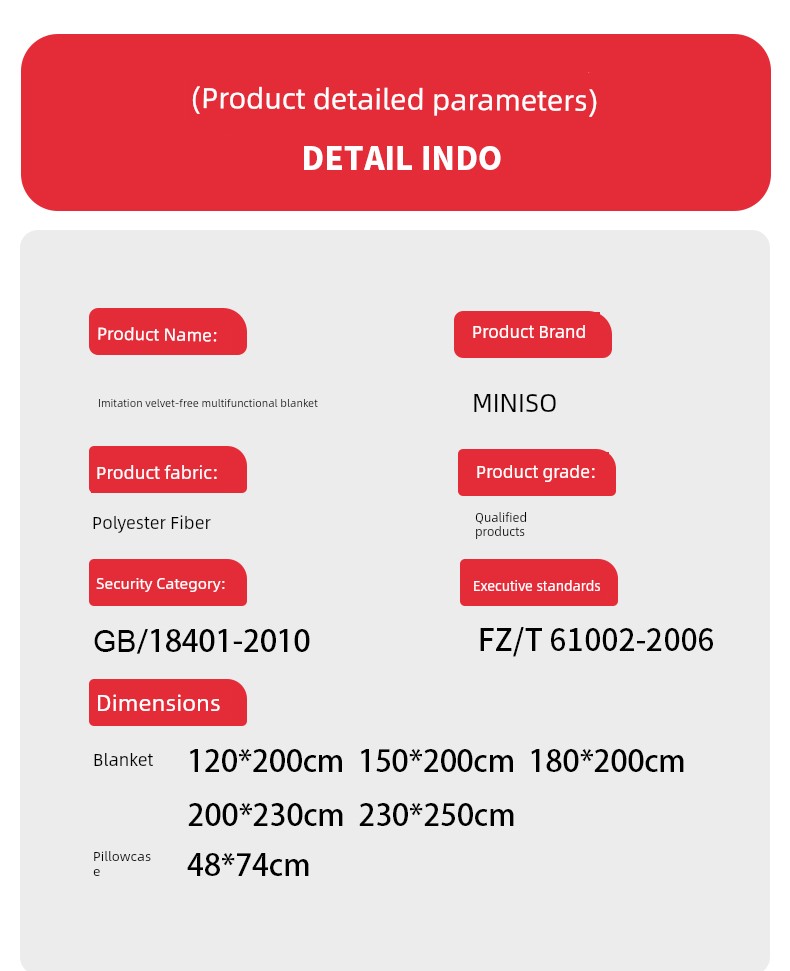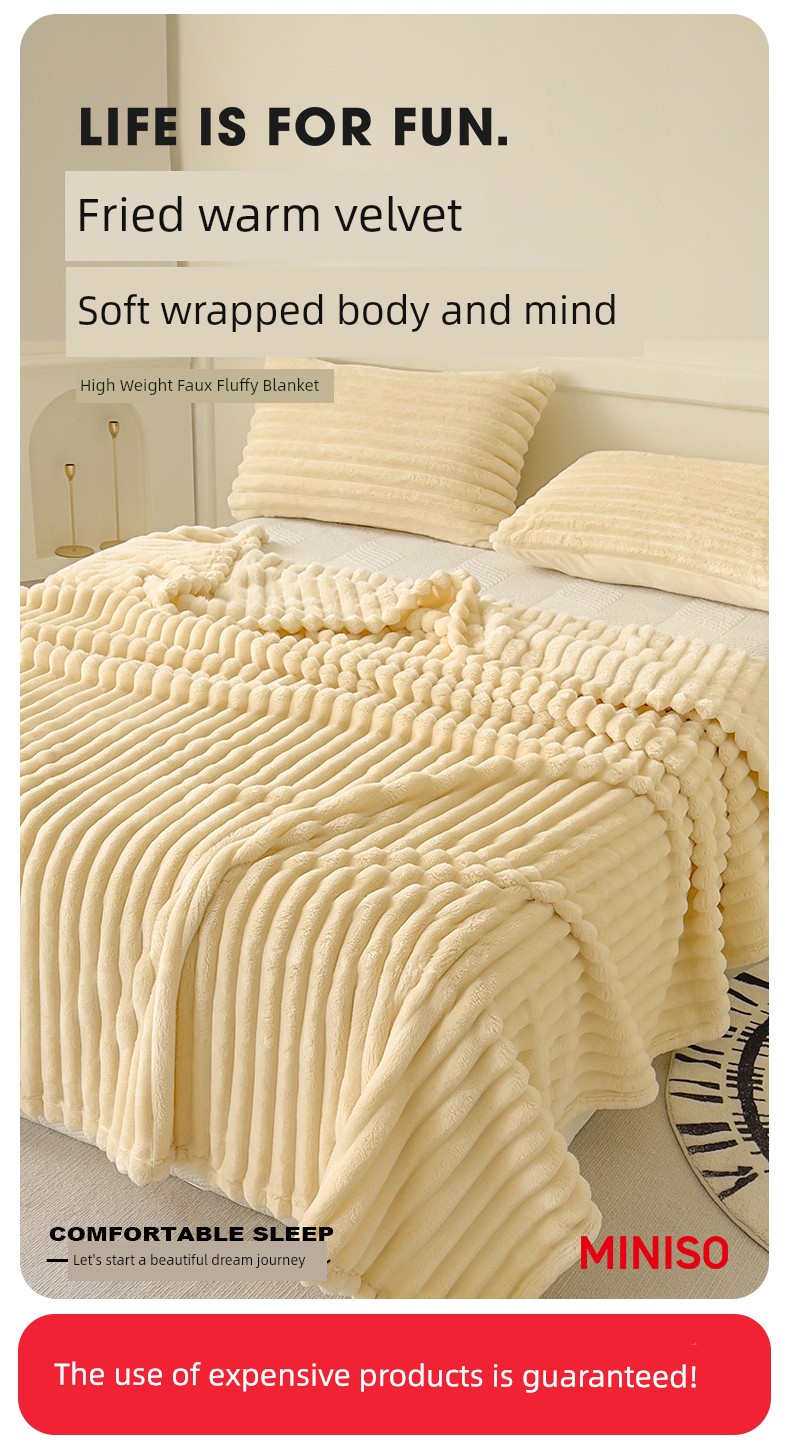 Experience the ultimate comfort with the MINISO Rabbit Plush Blanket, your new go-to for warmth and relaxation! Why you'll love it: - Luxuriously soft fabric for a warm hug feel. - Versatile design, perfect as a blanket or shawl. - Playful rabbit design suitable for all ages. - Ideal for chilly evenings, office naps, and cozy movie nights. - Perfect fit for adding style to any living space. Crafted from premium thick plush material, this blanket transforms any setting into a cozy and inviting space. Whether you're snuggling on the couch or need a light cover during work, the Rabbit Plush Blanket delivers unmatched comfort and style all year round. To use, simply drape it over your shoulders, wrap it around you while lounging, or use it as a stylish sofa cover. Don't miss out on this exclusive comfort item—get ready to embrace warmth and coziness every day!