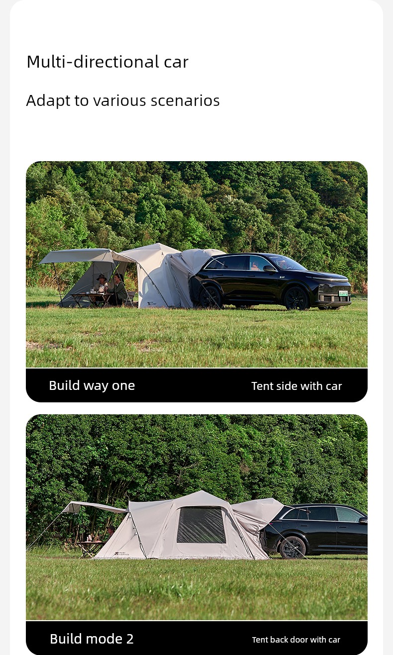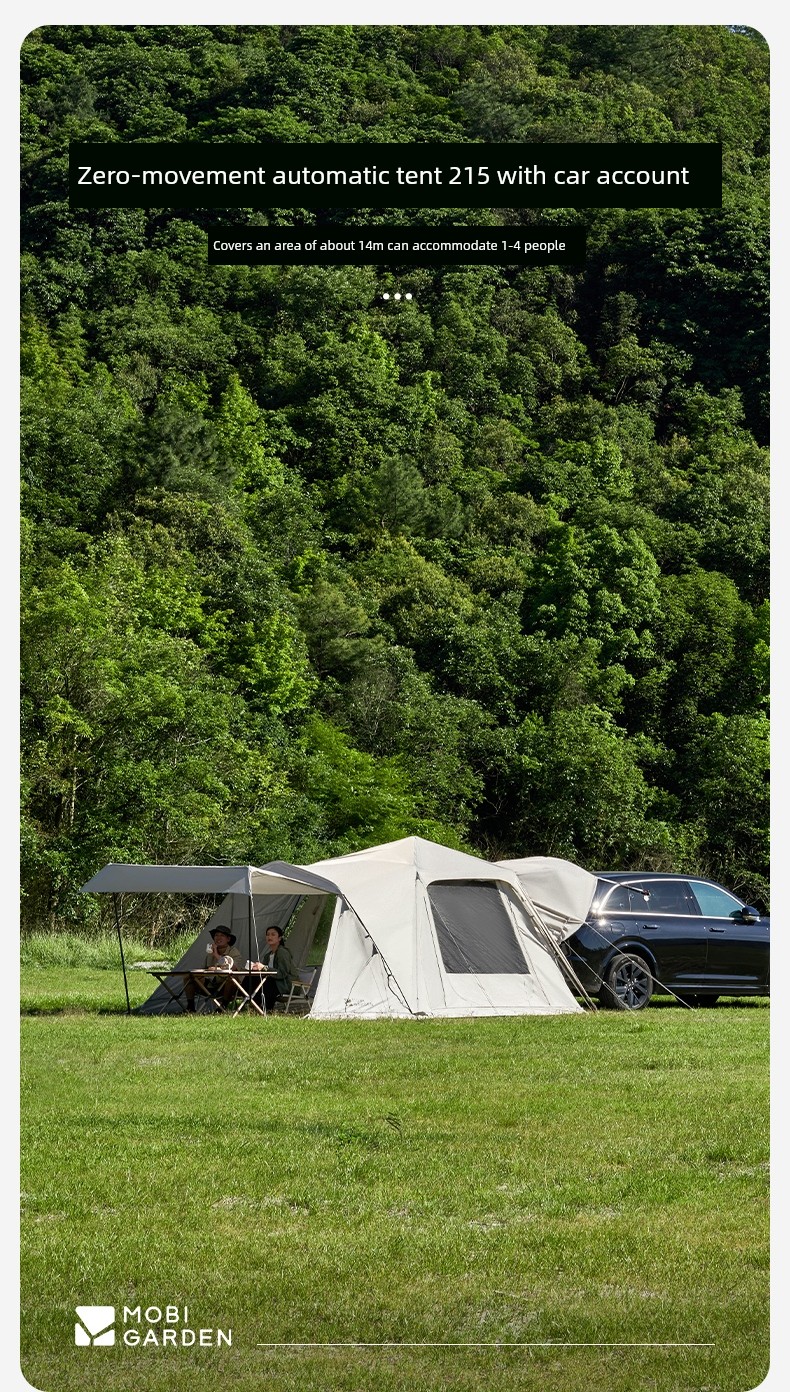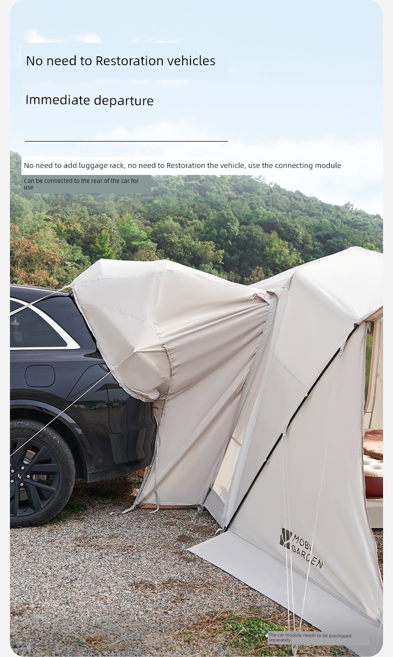 Picture this: a serene campsite bathed in golden sunlight, the laughter of friends, the distant sound of nature, and the perfect canopy that keeps your outdoor experience enjoyable. Introducing the Mobi Garden Rear Automatic Tent – your ultimate companion for adventure-filled weekends and spontaneous road trips, designed to transform your SUV into a cozy haven under the stars. Originating from the passion for outdoor exploration and the love for nature, Mobi Garden has crafted this innovative tunnel tent to address the often-overlooked comfort of car camping. No longer will you struggle with cumbersome setups or temperature fluctuations. Our automatic tent allows you to embrace the great outdoors effortlessly, ensuring your adventures are all about fun and relaxation. Featuring an innovative automatic pop-up mechanism, the Mobi Garden tent is super easy to set up. Just remove it from the bag, and watch as it springs into action in seconds. This means more time enjoying your outdoor activities and less time fumbling with poles and instructions. Plus, its spacious design accommodates multiple people, making it perfect for family camping trips or weekend getaways with friends. Imagine unwinding in a spacious tent after a long day of hiking, surrounded by the gentle rustle of leaves and the soft glow of fairy lights. You'll appreciate its water-resistant material, keeping you dry during unexpected showers, and the UV protection that shields you from harsh sun rays. The versatile design seamlessly connects to your SUV, allowing for easy access to the vehicle and added storage space for your gear. But don’t just take our word for it! Here’s what our customers are saying: \
