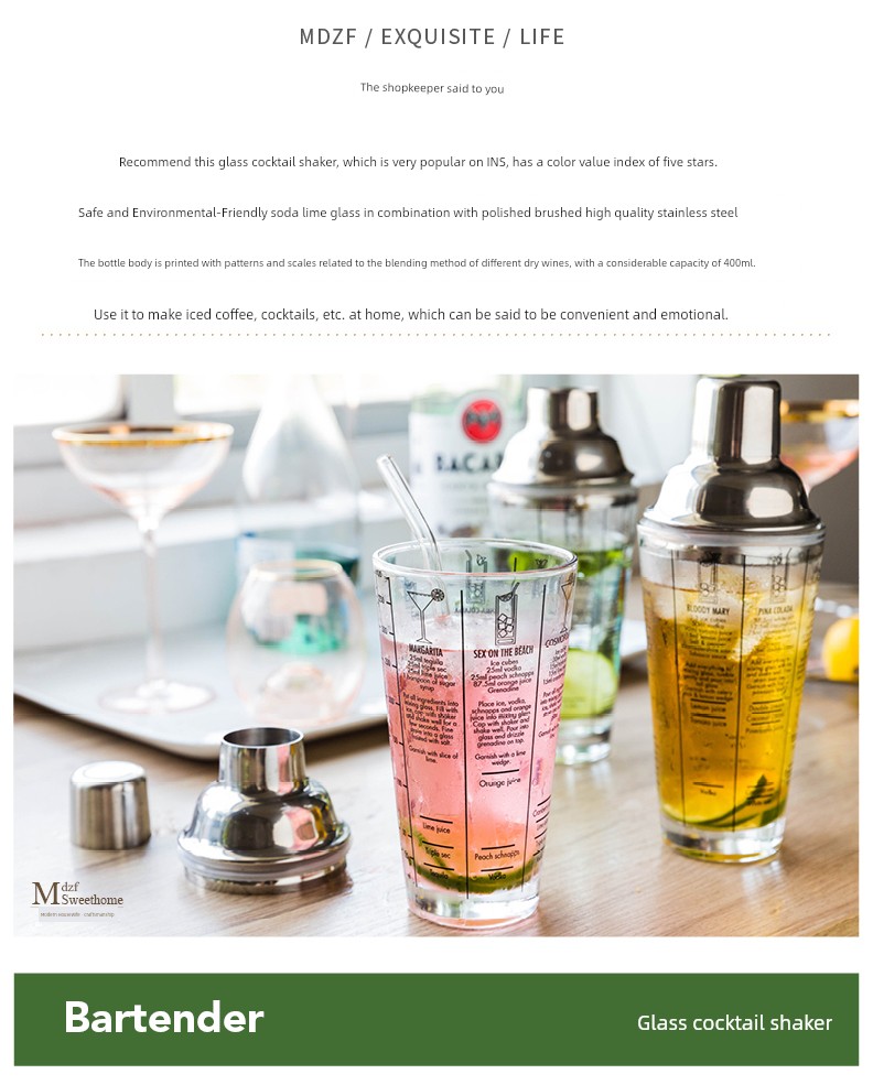 Modern Housewife Glass Shaker Making Cocktail Hand Making Lemon Tea Tamping Tool Hand Shaking Shaker Set