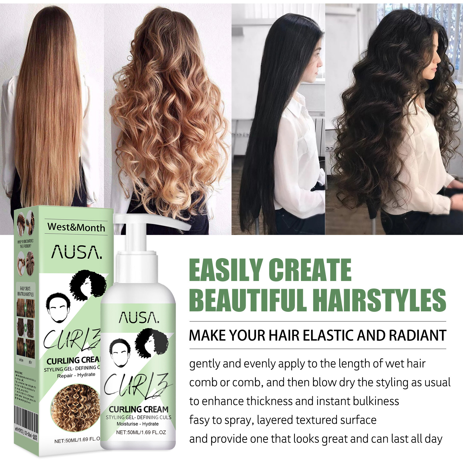 Achieve stunning curls with our Moisturizing Curl Styling Gel, designed to keep your curls fluffy, elastic, and frizz-free! Why you'll love it: - Infused with nourishing Argan & Camellia oils for optimum hydration. - Provides strong hold while maintaining hair elasticity. - Adds shine and protects against heat damage. - Simple application for effortless styling at home. - Perfect for on-the-go touch-ups or all-day hold. This premium styling gel is formulated with high-quality ingredients like argan oil and camellia oil to moisturize while enhancing the brightness of your curls. Its moderate light molding capability ensures easy care without the stiffness. To use, start with clean hair. Towel dry or blow dry until 80% dry, then dispense an appropriate amount of gel into your hands. Rub hands together and apply evenly from the bottom to the top of your hair. Enjoy defined, luscious curls with added gloss and smoothness. Don’t miss this best seller—get your perfect curl solution today!