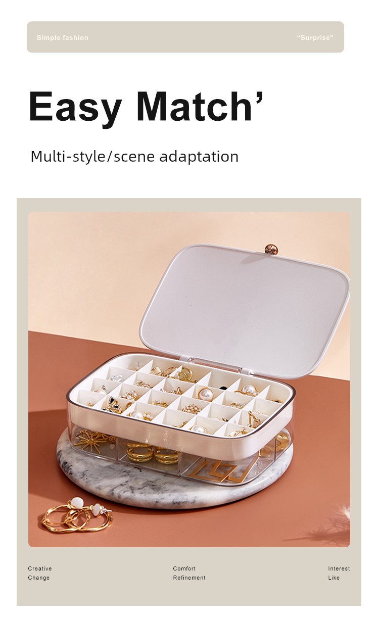 Imagine a world where your favorite jewelry is always organized, beautifully displayed, and easily accessible. Welcome to the realm of the Ultimate Jewelry Storage Box - a sanctuary for your precious pieces that adds elegance to your space and peace of mind to your daily routine. Born from a desire to find the perfect balance between functionality and style, this jewelry box was designed with you in mind. It emerged as a response to the common struggle of tangled necklaces, misplaced earrings, and chaotic ring drawers. Let this storage solution transform your life by bringing order and serenity to your jewelry collection. This multi-layer compartment box isn't just a pretty face; it’s packed with features that make every user’s life easier. With dedicated spaces for necklaces, rings, and bracelets, you’ll never have to worry about damage or tangles again. The soft, cushioned lining protects your delicate pieces, while the elegant design fits seamlessly into any room décor, whether on your dresser or vanity. Envision opening the box and seeing your jewel treasures laid out for you, each piece neatly waiting to be chosen. As you prepare for the day or a special evening out, explore your collection effortlessly, choosing the perfect accessory to complement your outfit or mood. The joy of finding exactly what you need at a moment’s notice cannot be overstated. But don’t just take our word for it! Here’s what others have experienced: ‘Absolutely love this jewelry box! No more tangled chains – it's like having a mini boutique at home!’ - Emma P. ‘I bought this as a gift, and it was a huge hit! The compartments make organization a breeze!’ - James K. Ready to elevate your jewelry game? Don't miss out on the chance to own the Ultimate Jewelry Storage Box. Regain control of your accessories and embrace a new era of elegance and efficiency. Shop now and bring harmony to your collection!