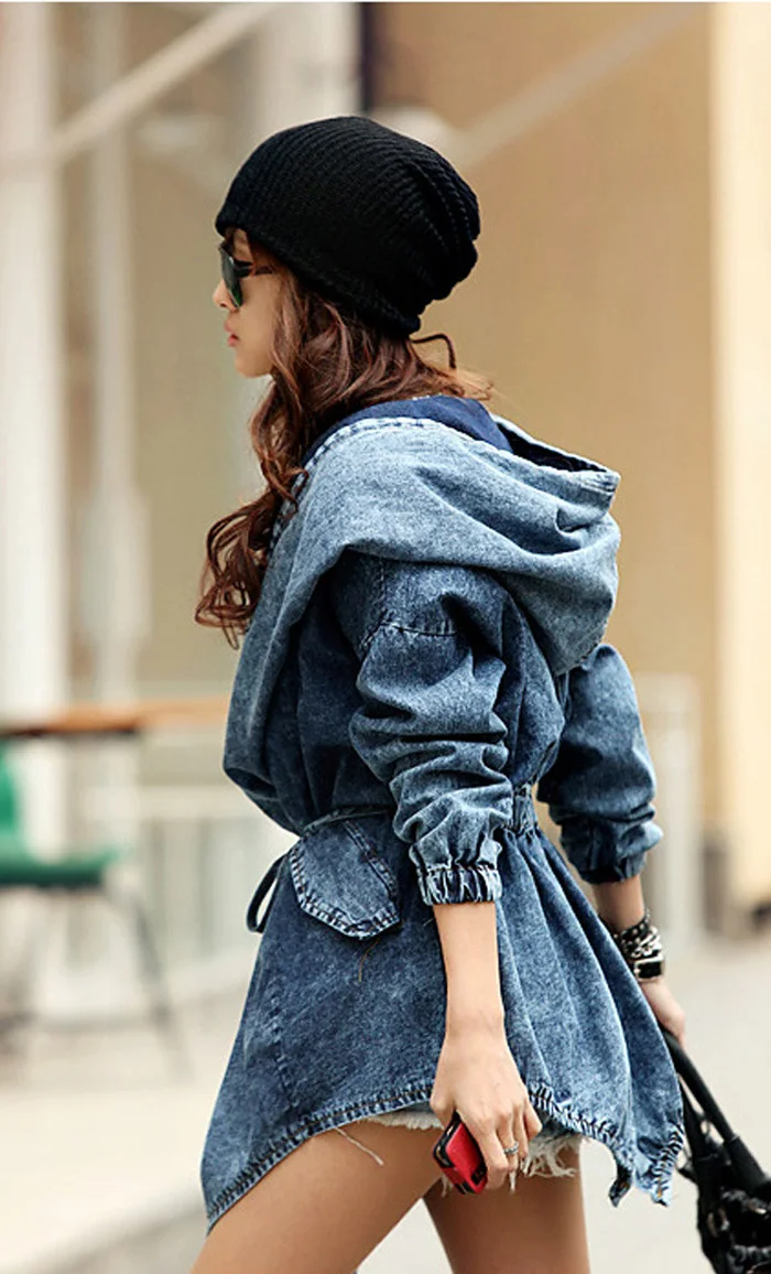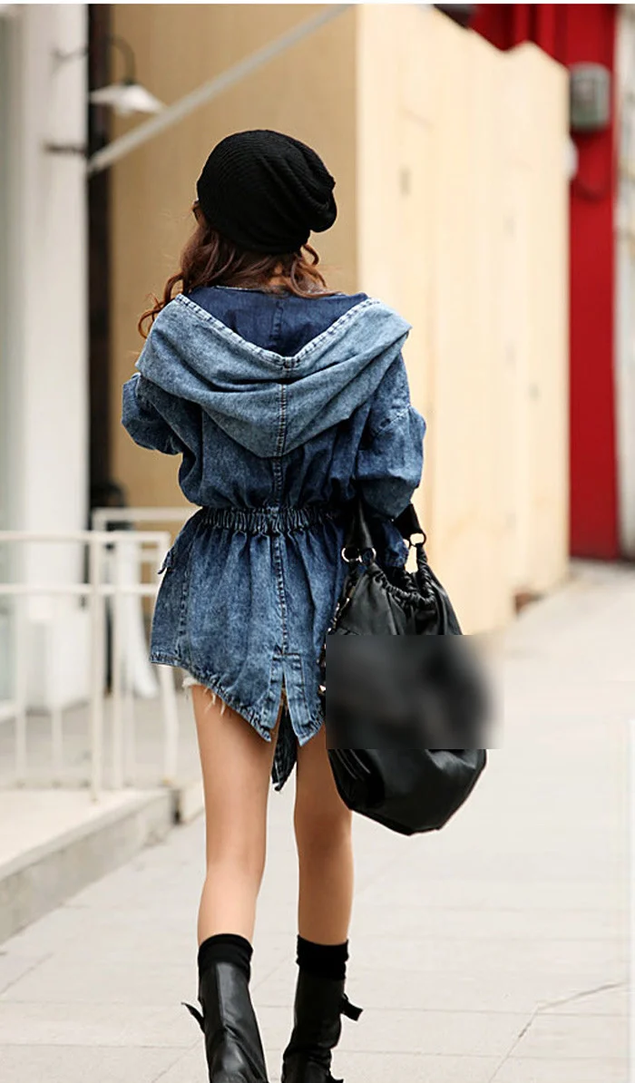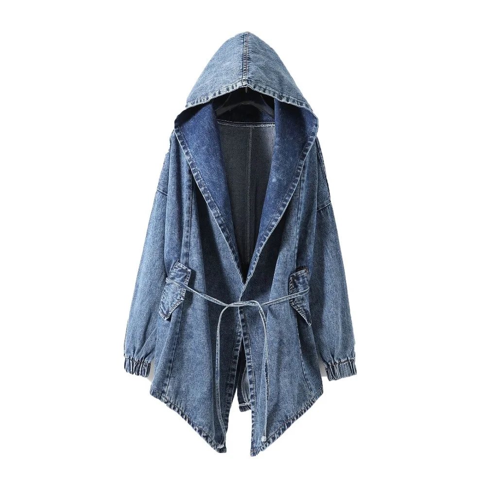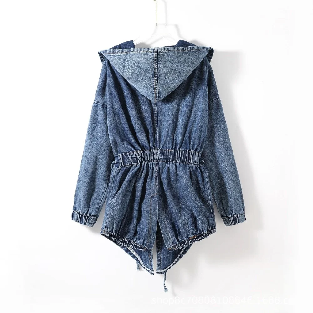 New Girl's Denim Jackets Oversized Hoodie Hooded Outerwear Jean Wind Jacket Fashion Design Denim Women Coat