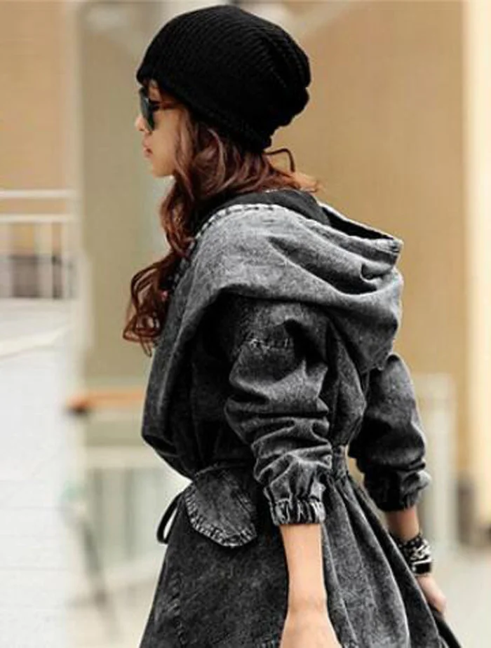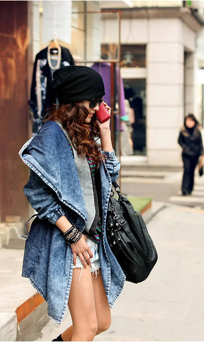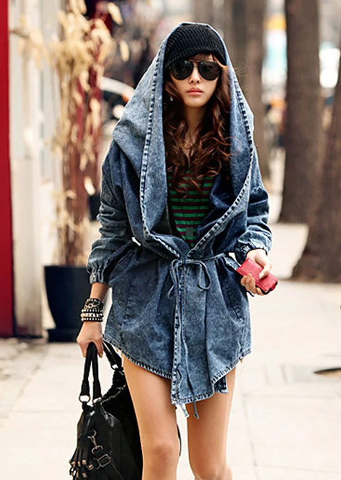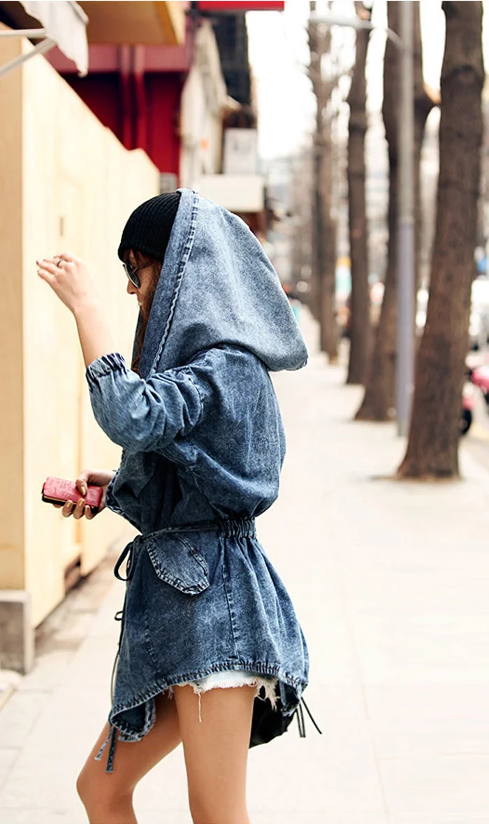New Girl's Denim Jackets Oversized Hoodie Hooded Outerwear Jean Wind Jacket Fashion Design Denim Women Coat