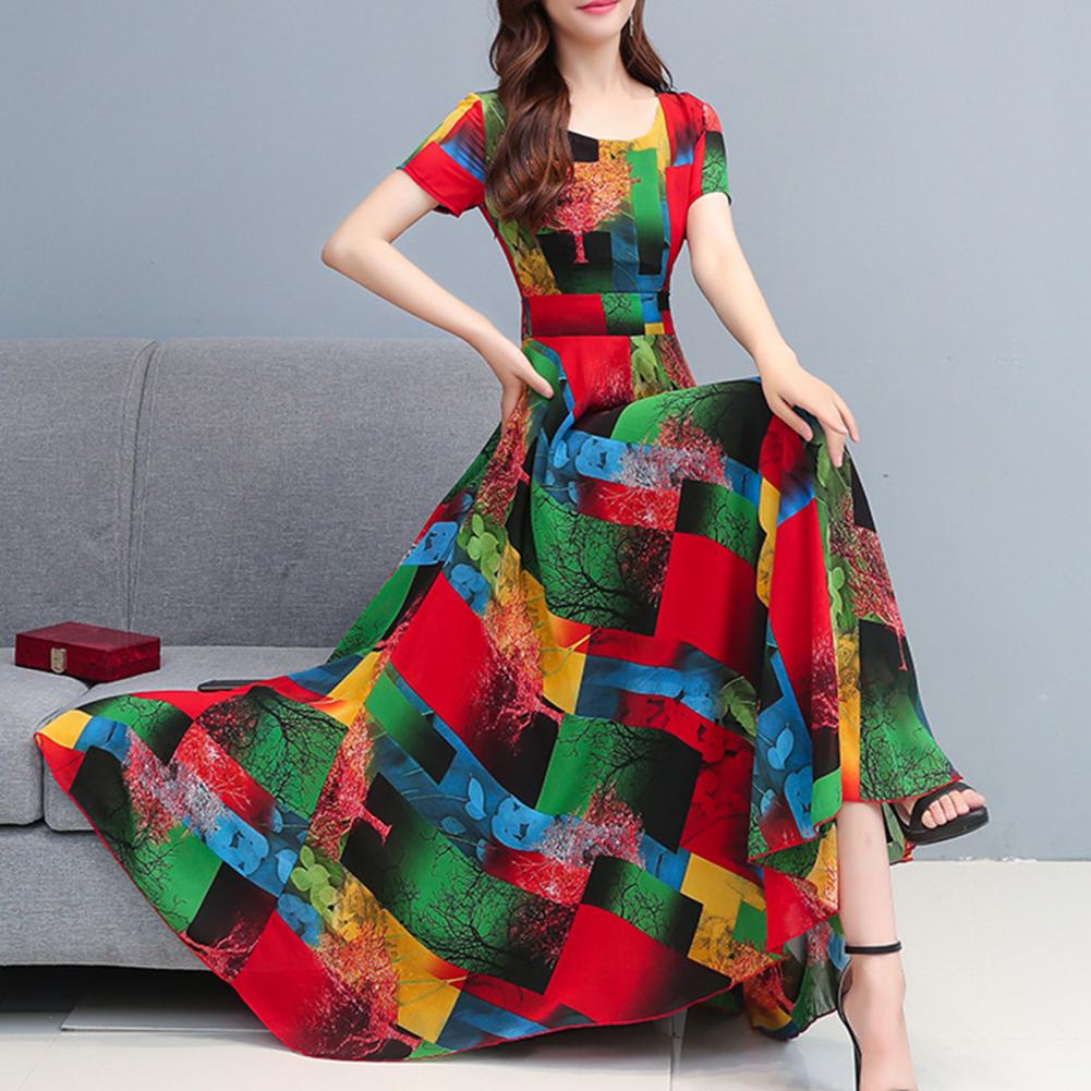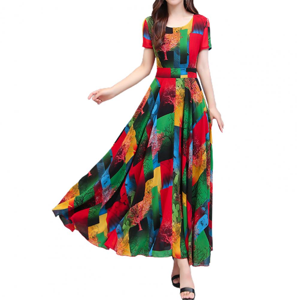 Slim round neck short sleeve long dress can be paired with high heels and fashionable bags that will offer a different and beautiful appearance.