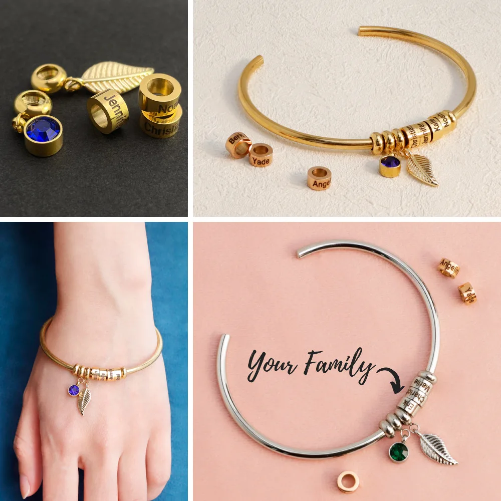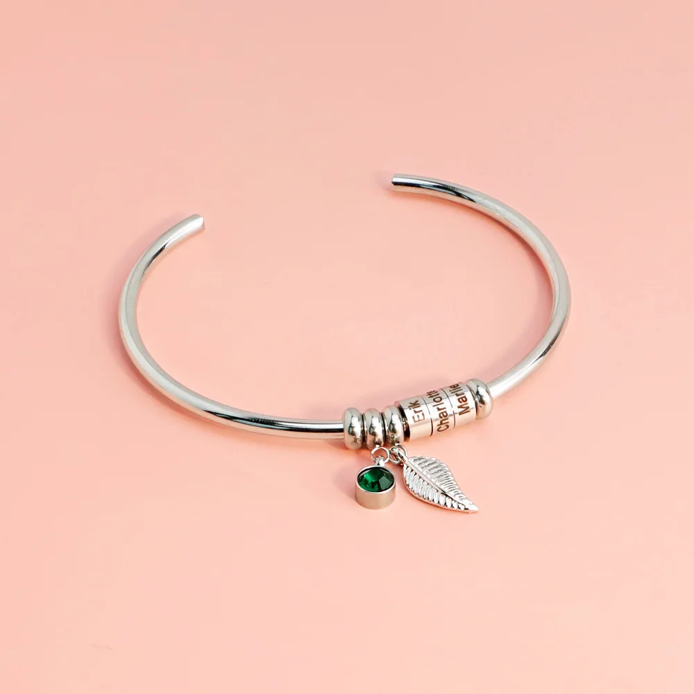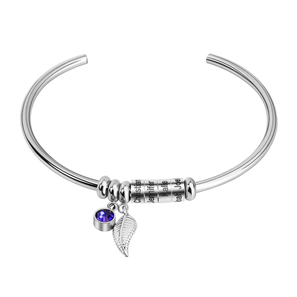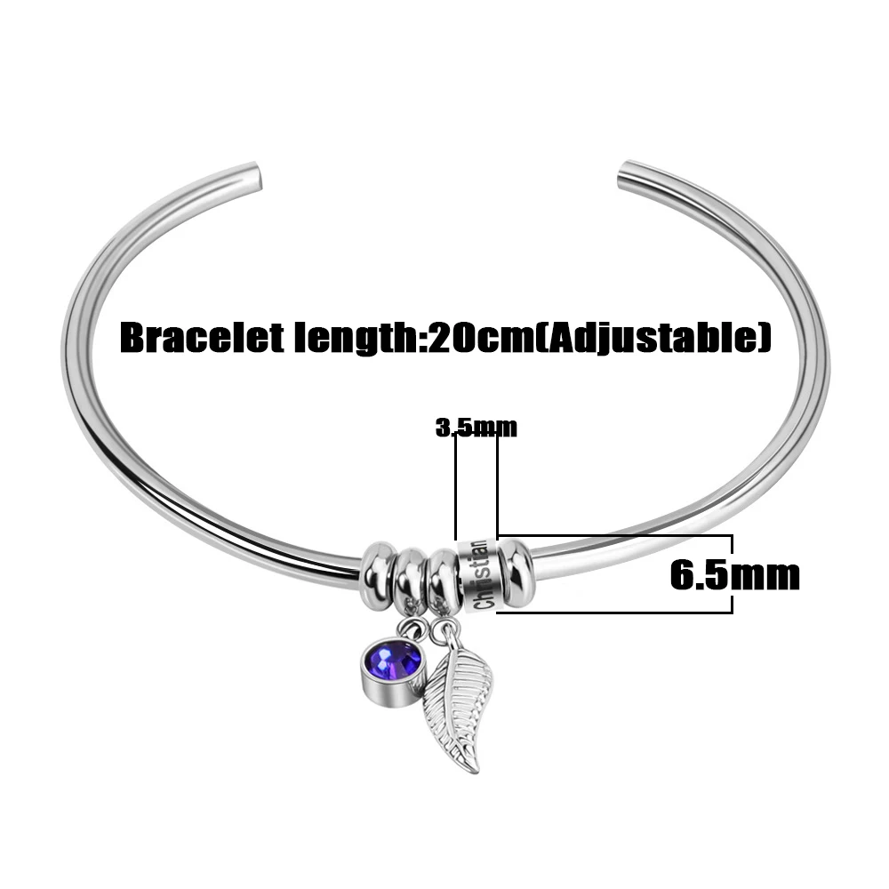 Personalize Women Bracelet Custom Name Bracelet with Birthstone Leaf Charm Gold Stainless Steel Bracelet Bangles for Women Gift