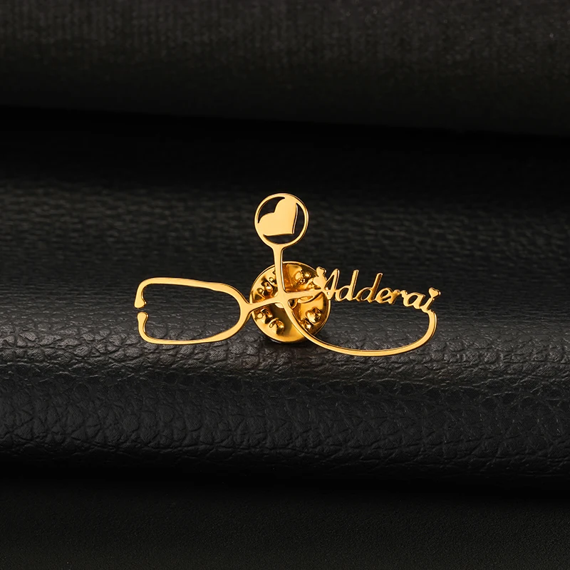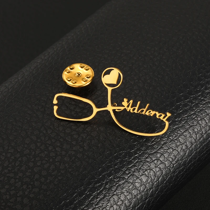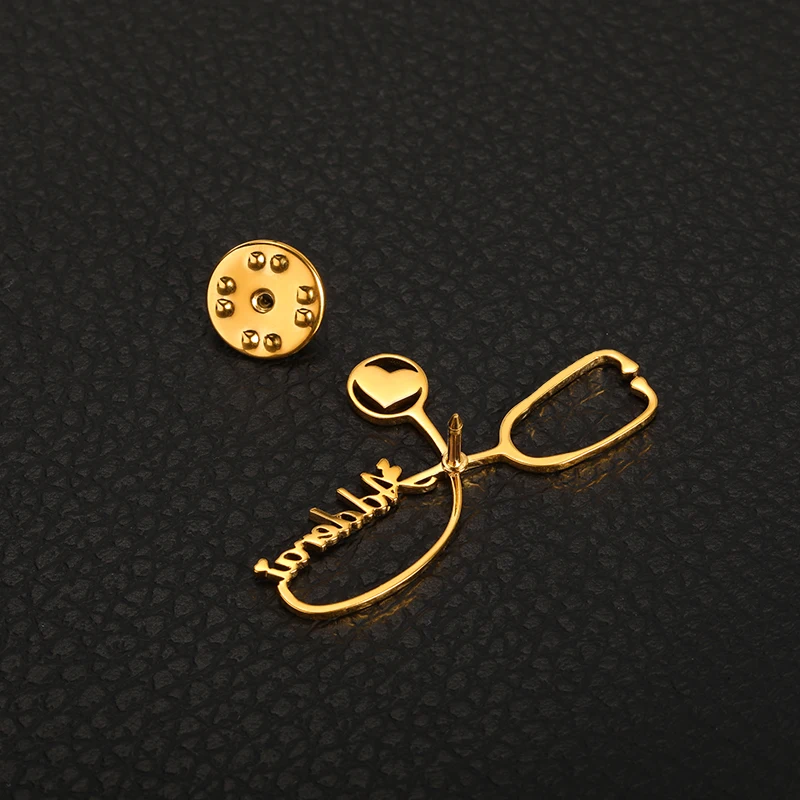 Personalized Customized Name Brooches For Women Gold Color Stainless Steel Letter Stethoscope Pin Badges Broochs Wedding Jewelry
