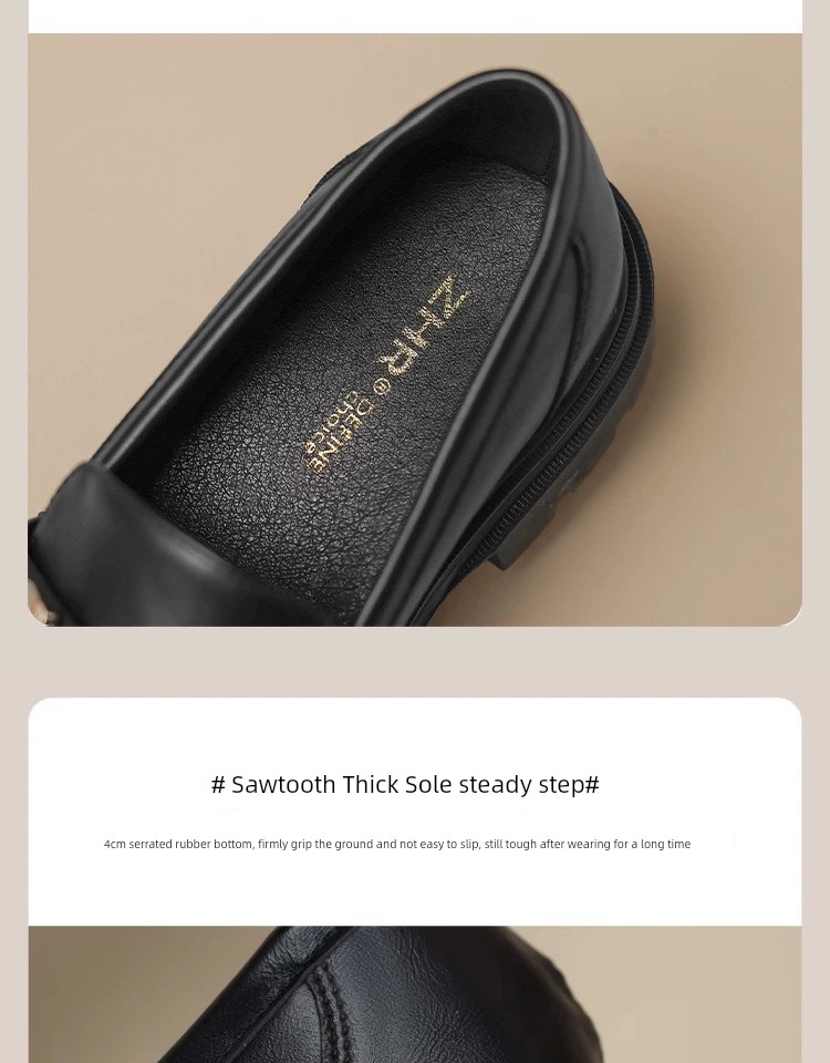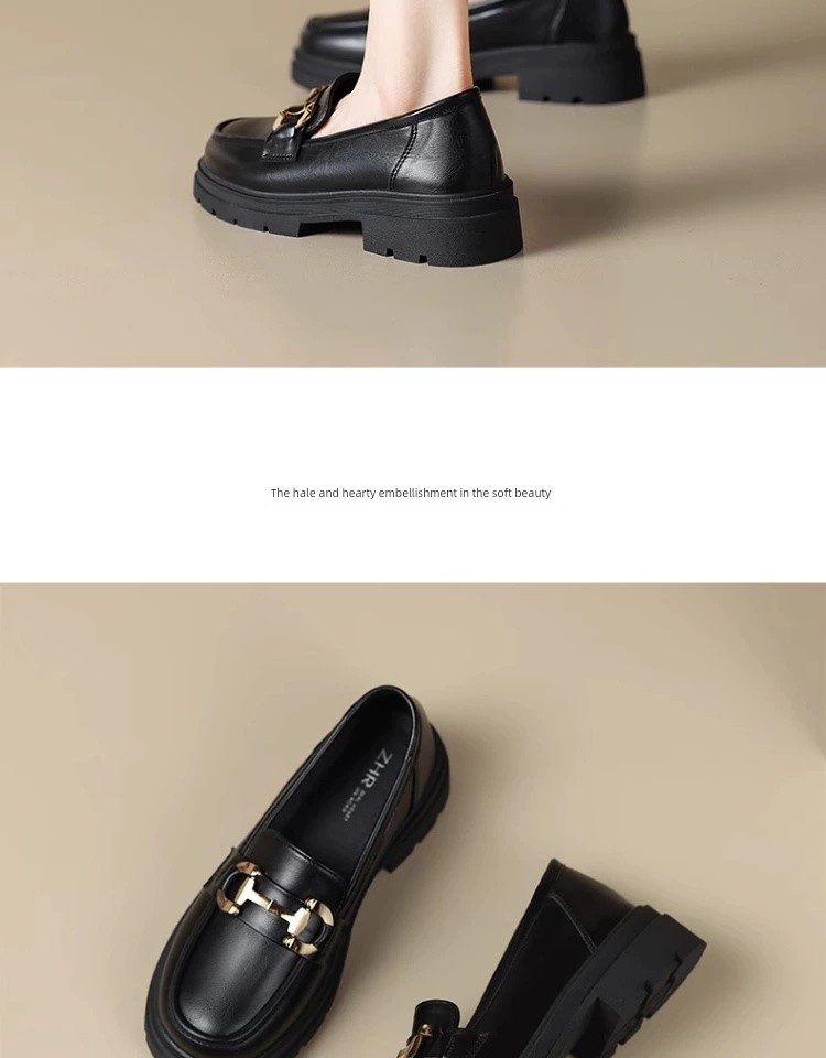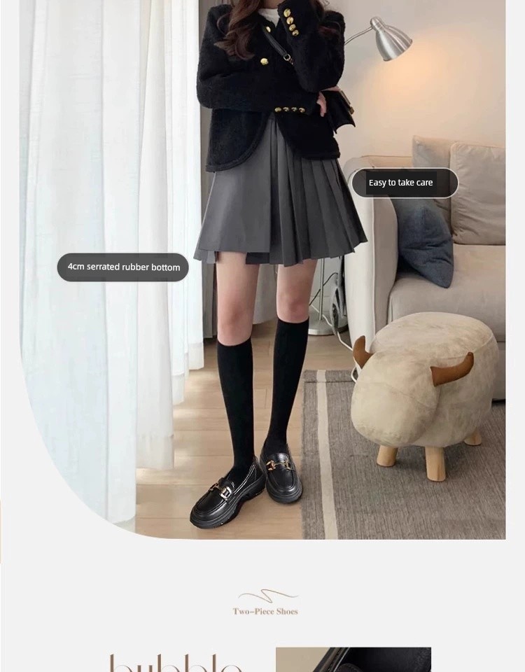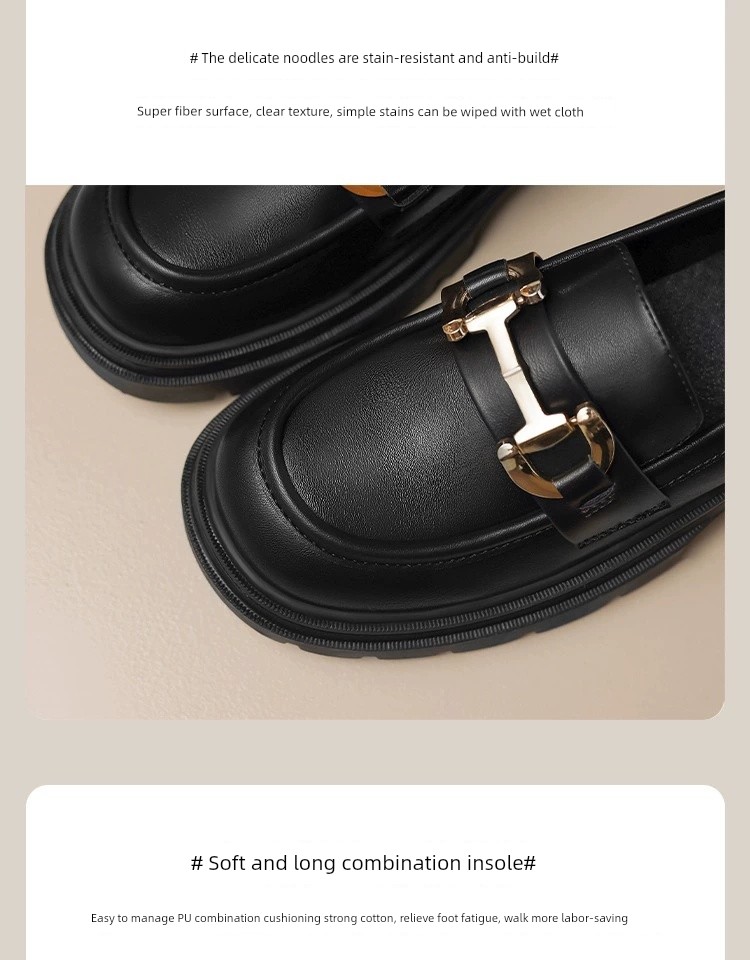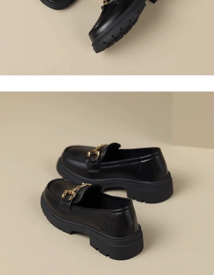 Platform Loafers Women's 2024 Fall and Winter New Arrival Fleece-Lined Leather Shoes British Black Soft End Cotton Shoes Slip-on Flats