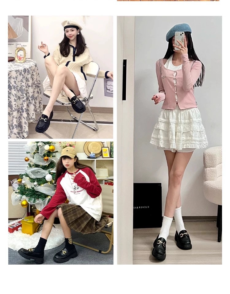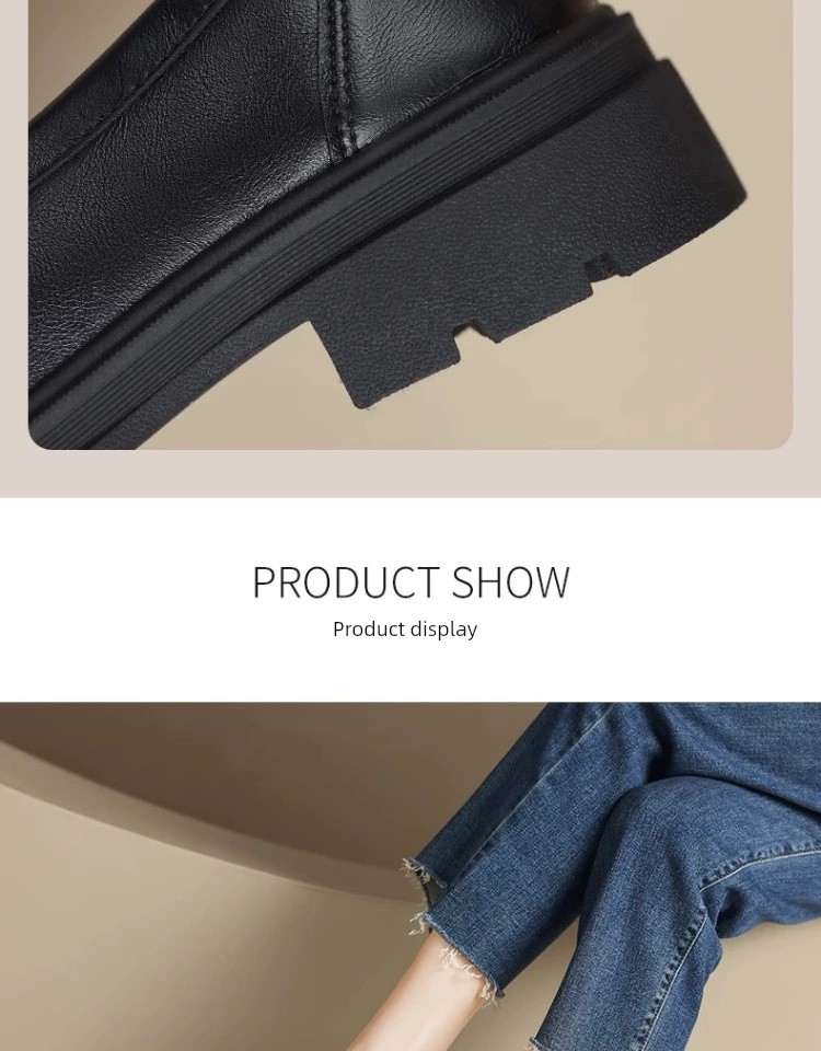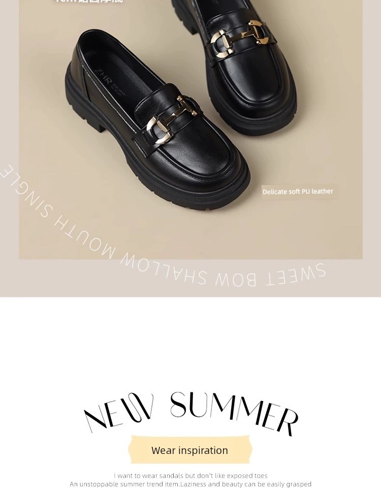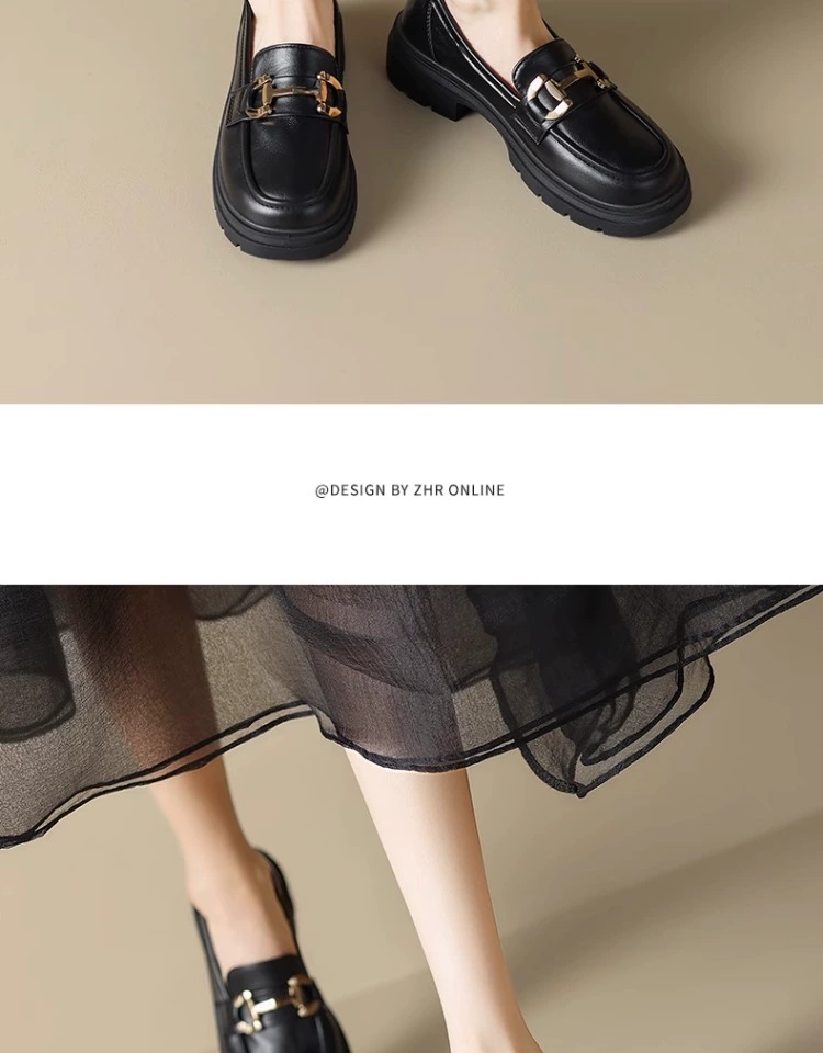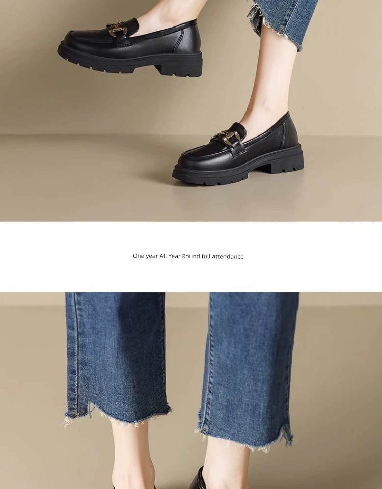 Platform Loafers Women's 2024 Fall and Winter New Arrival Fleece-Lined Leather Shoes British Black Soft End Cotton Shoes Slip-on Flats
