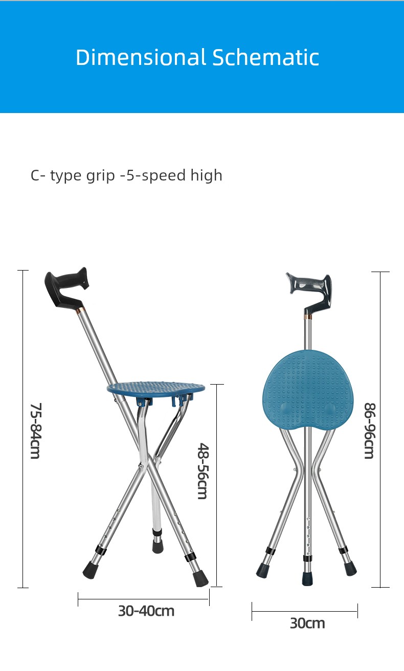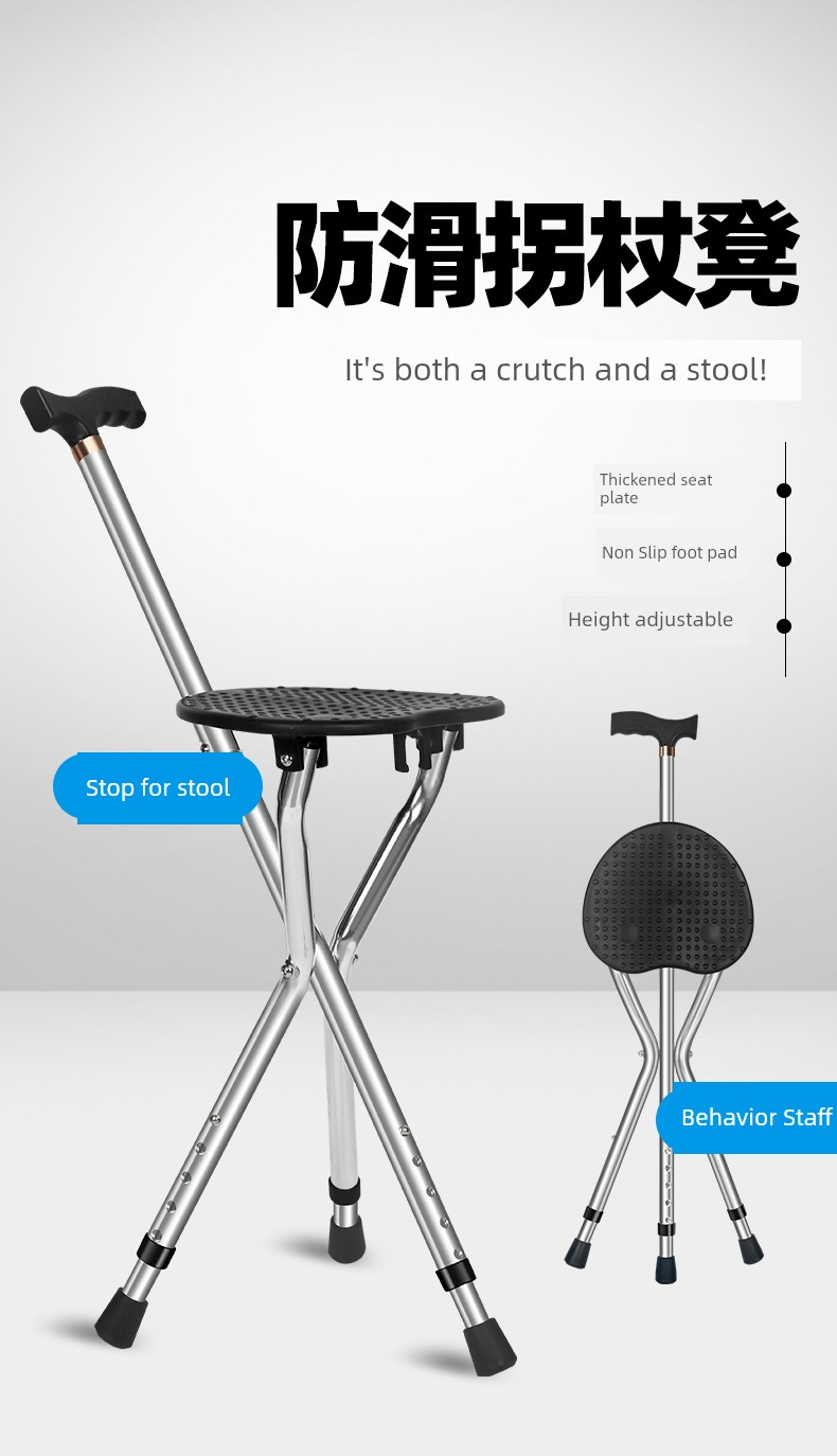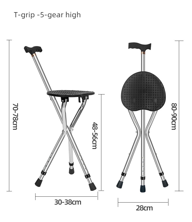 Portable Bench Chair Dual-Use Walking Stick for the Elderly
