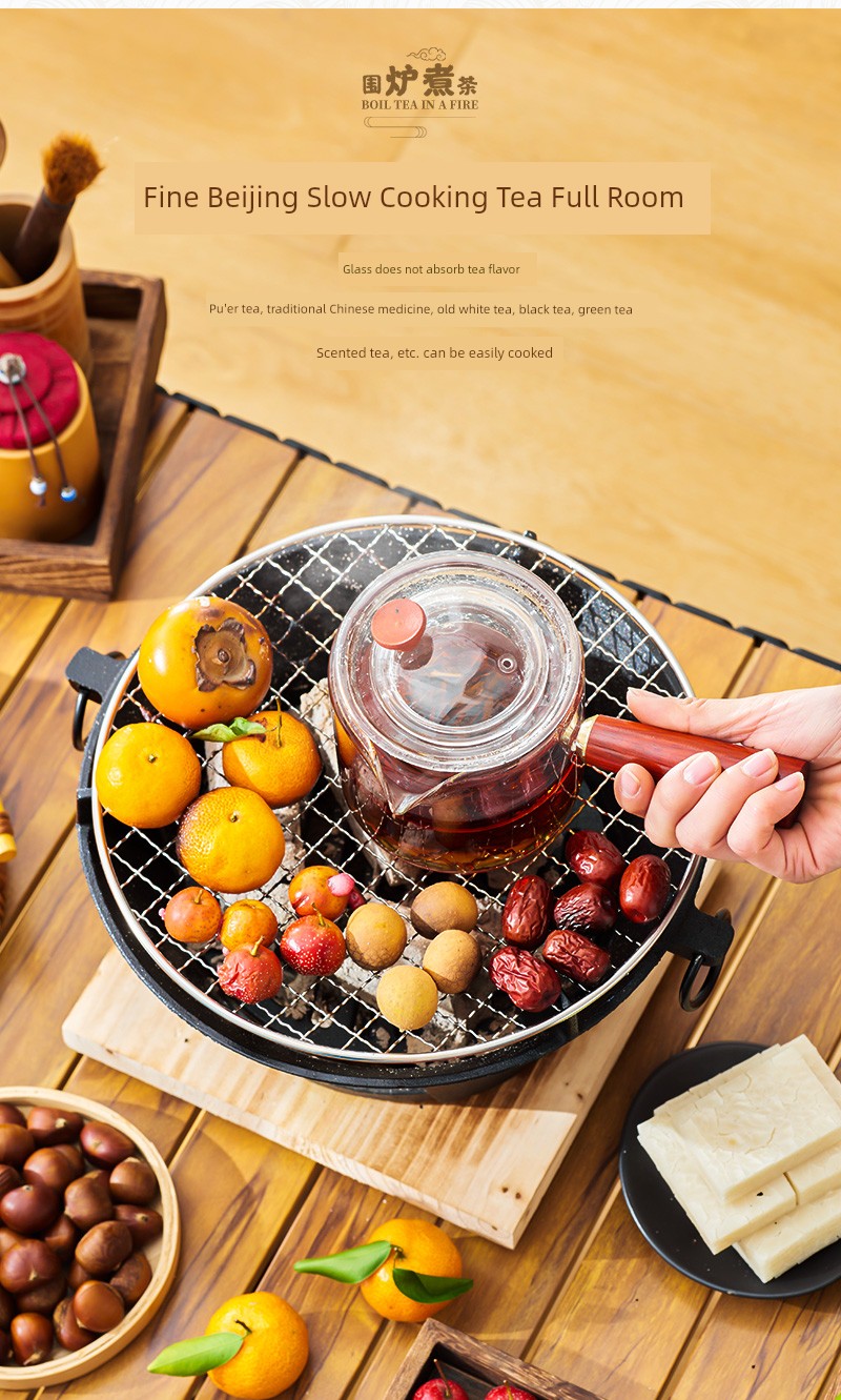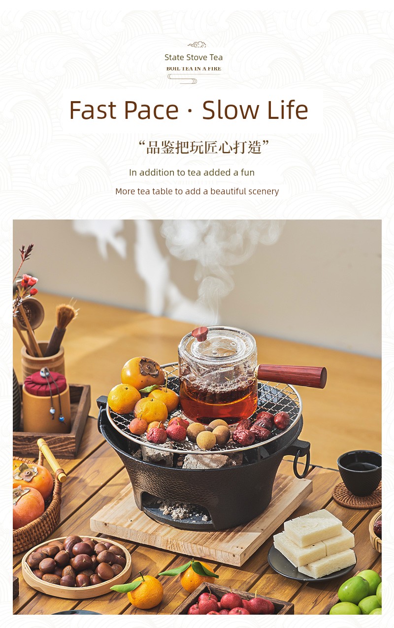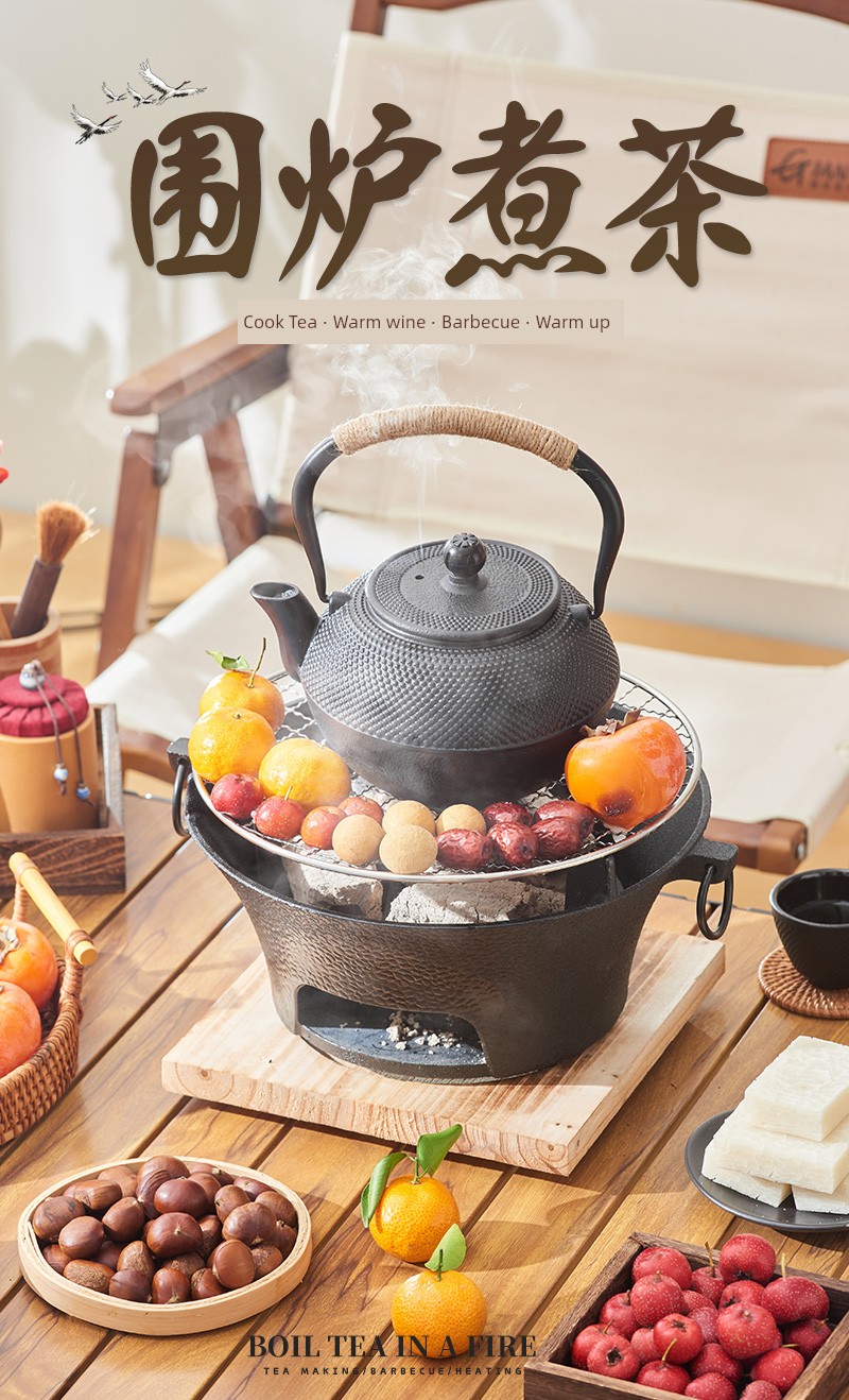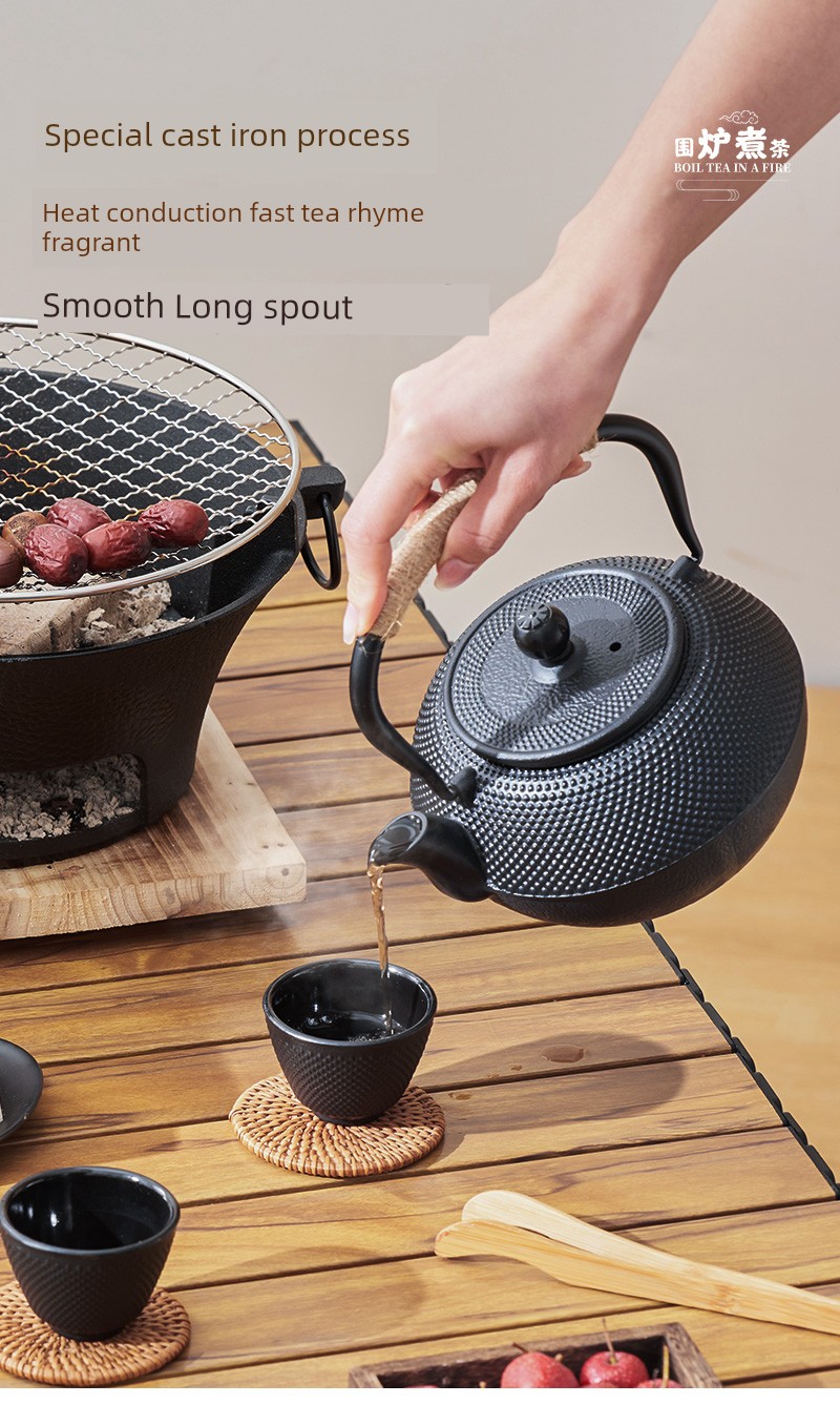 Portable Charcoal Cast Iron Stove & Tea Set
