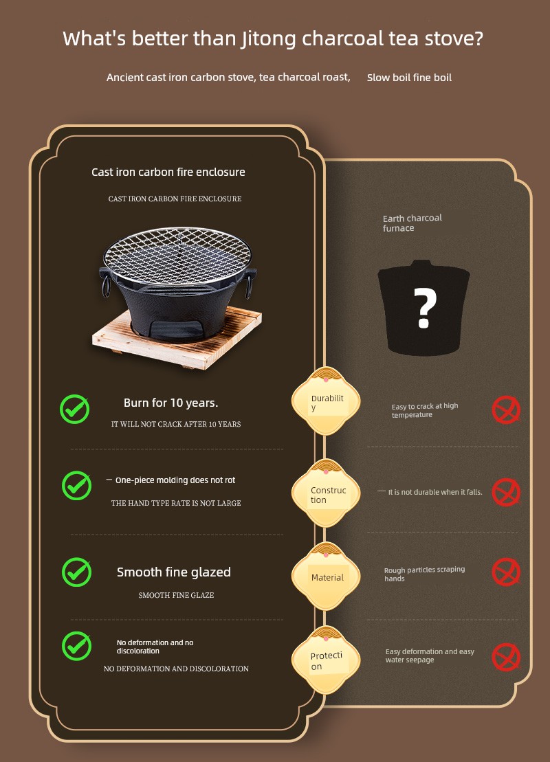 Elevate your outdoor cooking experience with this Premium Portable Charcoal Cast Iron Stove and Tea Set! Perfect for camping, picnics, or backyard barbecues, this versatile kit assures the best brewing of your favorite teas. Why you'll love it: - High-Quality Cast Iron for Even Heat Distribution. - Complete Tea Set for Brewing On-The-Go. - Compact and Lightweight Design for Easy Transport. - Ideal for Camping, Picnics, and Outdoor Gatherings. - Exclusive Offer – Limited Time Only! This charcoal stove is crafted from durable cast iron, ensuring long-lasting use while providing an authentic tea-brewing experience. Included is a complete tea kettle and set, designed specifically for all your outdoor adventures. To use, simply ignite the charcoal in the stove, wait for it to reach the desired temperature, and place your tea kettle on top for a perfectly brewed cup – no matter where you are. Don't miss out on this essential outdoor cooking companion!