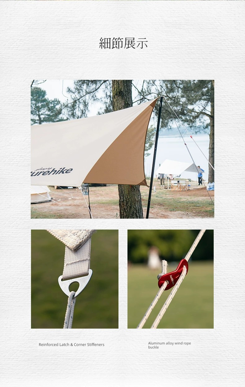 Stay cool and comfortable outdoors with the Naturehike Portable Hexagonal Canopy. Designed for camping and outdoor adventures, this sunshade provides premium protection from harmful UV rays while being easy to set up. Why you'll love it: - Spacious hexagonal design for maximum shade coverage. - Made from high-quality stretch cotton for durability and breathability. - Lightweight and portable, perfect for on-the-go adventures. - Ideal for camping, picnics, or beach days. - Easy assembly, so you can relax in no time. Crafted from premium stretch cotton, this canopy is designed to withstand outdoor conditions while offering a perfect fit for your needs. Its hexagonal structure not only provides ample shade but also adds a stylish touch to your outdoor setup. To use, simply unfold the canopy, secure the corners with stakes, and enjoy a shaded area for relaxation or meals. Perfect for family outings or solo adventures! Don’t miss out on this exclusive item to enhance your outdoor experiences.