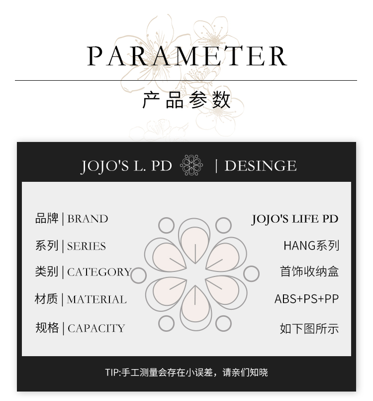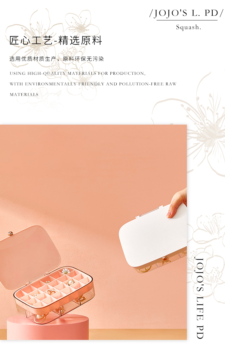 Imagine opening a beautifully crafted box, adorned with elegance and purpose – welcome to Jojo's L. Pd. Hang. Jewelry Storage Box, your new essential companion that transforms chaos into charm. Have you ever found yourself tangled in a mess of jewelry, searching for that perfect pair of earrings or a cherished necklace? Let us take you on a journey to simplicity and style. This jewelry storage box was born from a need for beauty and efficiency, designed to meet the demands of every jewelry lover. Jojo’s passion for organization and aesthetic appeal led to the creation of this exquisite box, a testament to the art of storage. No longer will your treasured pieces be scattered about, forgotten at the bottom of drawers or hidden beneath clutter. With compartments designed specifically for earrings, necklaces, and other precious accessories, this portable storage solution seamlessly combines functionality with elegance. You'll adore how its sleek design fits effortlessly into your lifestyle, whether at home or on the go. No more scratched surfaces or lost pieces; every item has its place, allowing you to see and access your jewelry effortlessly. Picture yourself reaching for your favorite earrings or necklace from this stunning box. The soft velvet interior cradles your pieces with care, while the charming exterior adds a touch of sophistication to your vanity. As you open it, each compartment reveals your items beautifully showcased, a delightful morning routine that boosts your confidence before stepping out into the world. But don’t just take our word for it. Rosa M. shares, \