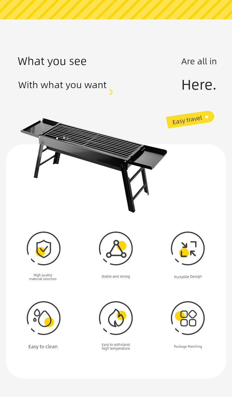 Elevate your outdoor cooking experience with our Portable Stainless Steel Barbecue Grill, perfect for camping, picnics, or backyard cookouts. Why you'll love it: - Compact and Foldable Design for Easy Transport. - Durable Stainless Steel Construction for Longevity. - Ideal for Outdoor and Indoor Use alike. - Perfect Fit for Cooking Delicious Meals On-the-Go. - Limited Time Offer for BBQ Enthusiasts! This premium barbecue grill features high-quality stainless steel, ensuring durability and resistance to rust. Its foldable design makes it a convenient choice for your camping adventures or home use. With a sturdy rack that holds your food securely, you can grill meats, veggies, and more to perfection. To use, simply unfold the grill, place it over a heat source, and get cooking! Whether it’s a family gathering or a solo trip, this barbecue stove is your perfect companion to tantalizing outdoor meals. Don't miss out on our exclusive limited-time offer!