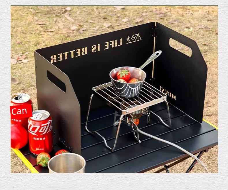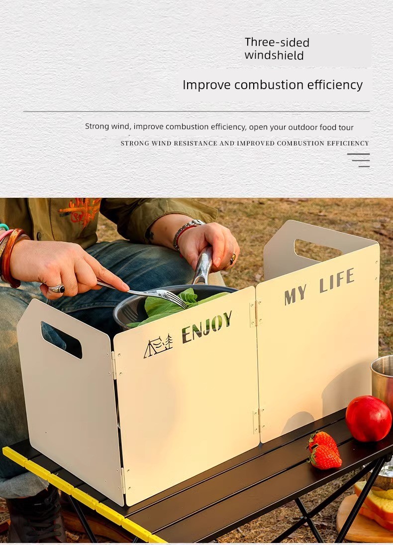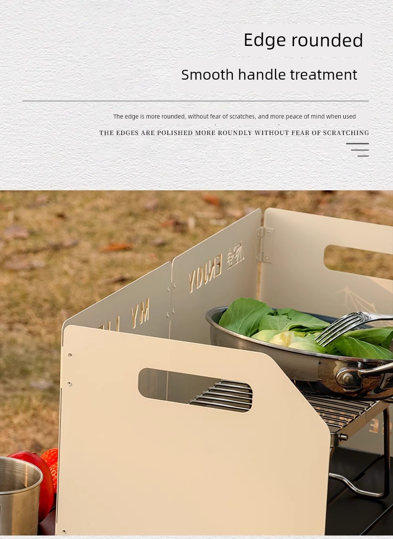 Stay warm and cook efficiently with our Portable Wind Deflector for Camping Gas Stove. Designed to shield your flame from harsh winds, this handy gadget ensures your outdoor cooking remain hassle-free. Why you'll love it: - Premium wind protection for consistent cooking. - Foldable and portable design for easy transport. - Thickened baffle for enhanced durability. - Compatible with most camping gas stoves. - Perfect for camping, hiking, and outdoor adventures. Constructed with high-quality materials, this wind deflector creates a protective barrier around your gas stove, enhancing cooking efficiency even in the windiest conditions. To use, simply unfold and position it around your stove before igniting the flame. Enjoy your outdoor cooking experience without interruptions, making it a must-have for all your camping trips. Limited time offer, grab yours today!