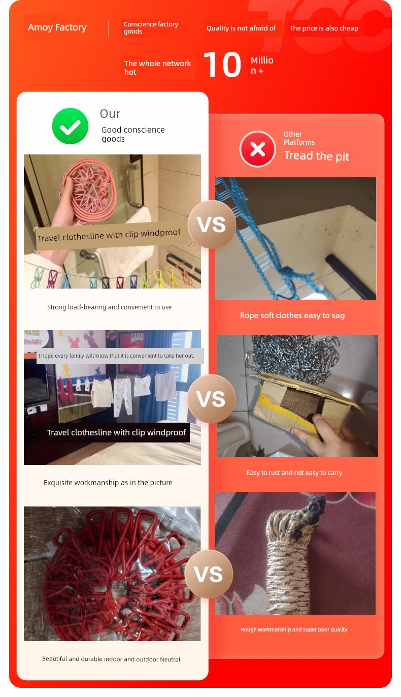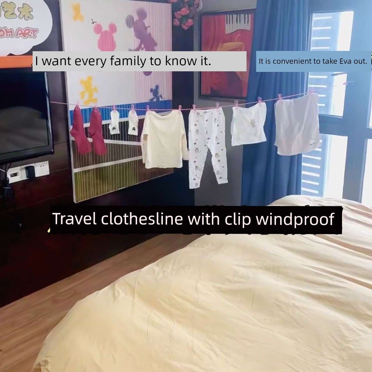 Stay organized wherever you go with our Portable Windproof Clothesline, designed for indoor and outdoor use at hotels, camps, or home. Why you'll love it: - Compact and Lightweight for Easy Travel. - Windproof Design Ensures Clothes Stay Secure. - Versatile Use for Indoor and Outdoor Settings. - Durable Material Built to Last. - Perfect for Tourists, Campers, and Homeowners. This premium clothesline is made from high-quality, durable materials that withstand the elements, ensuring your laundry stays put even on windy days. Its convenient design allows for easy setup in various settings, making it a must-have for your travels or everyday laundry needs. Simply stretch the clothesline between two points, clip your garments, and enjoy hassle-free drying. Perfect for those on the go or anyone needing a reliable drying solution at home. Don’t miss out on this essential travel accessory—grab yours today!