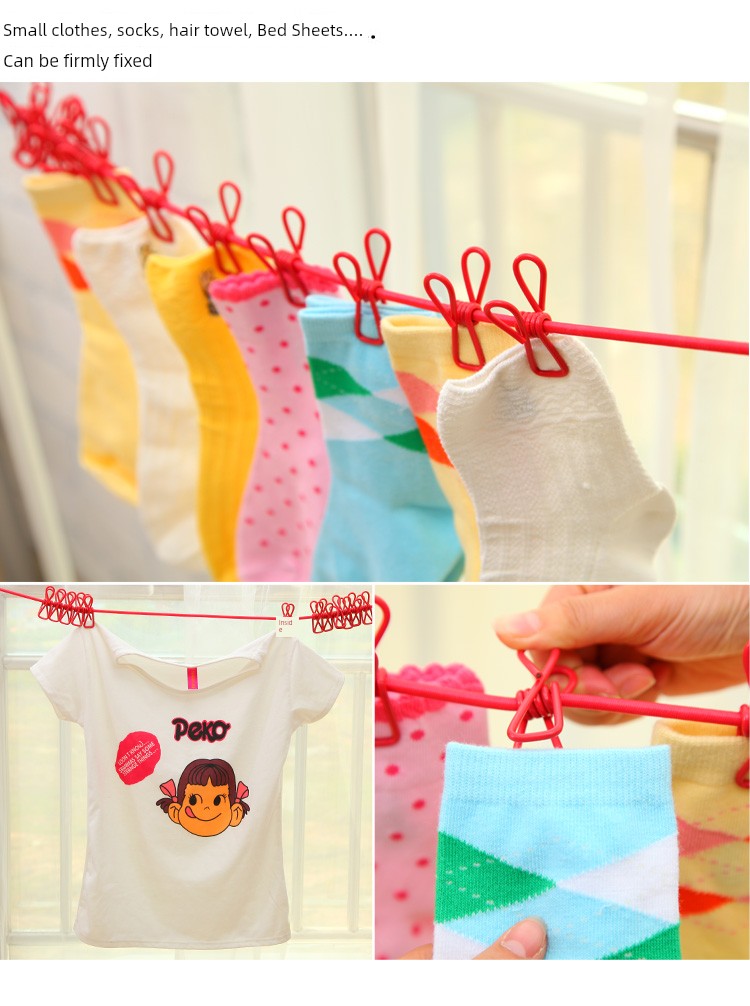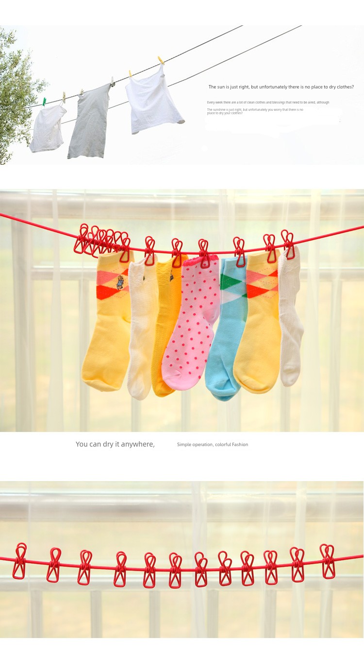 Stay organized on your travels with our Portable Windproof Clothesline. This essential travel accessory ensures your clothes stay dry and secure, making it perfect for outdoor adventures or hotel stays. Why you'll love it: - Compact and lightweight design for easy packing. - Windproof feature keeps clothes secure in gusty conditions. - Versatile usage for camping, hotels, or laundry on the go. - Durable materials guarantee long-lasting performance. - A must-have for every traveler and adventure seeker. Crafted from premium materials, this clothesline provides reliability and convenience for drying clothes wherever you are. Its easy-to-use design suits various settings, from hotel balconies to outdoor campsites. Simply stretch the clothesline between two fixed points, hang your washed clothes, and let the wind do the rest. Enjoy the ultimate convenience and peace of mind with this best-seller on your travels!