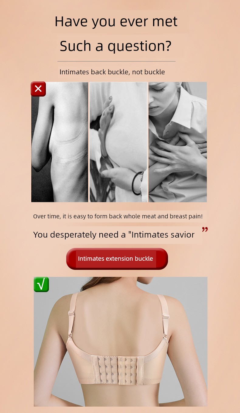 Elevate your comfort with our Premium 4-Row Extension Bra, designed with a unique hook buckle for the ultimate support and style. Why you'll love it: - Enhanced Comfort with 4-Row Design. - Adjustable Hook Buckle for the Perfect Fit. - Stylish and Functional Three-Button Joint. - Ideal for All-Day Wear and On-the-Go Activities. - Versatile for Different Outfits and Occasions. This exclusive bra is made from premium quality materials that ensure durability and exceptional comfort throughout your day. Engineered to provide a flattering fit, it is perfect for layering under any outfit or for wearing alone for a chic look. To use, simply adjust the hook buckle to your desired fit and enjoy the blend of comfort and style it offers. Perfect for enhancing your lingerie collection—grab yours today for a limited time and redefine your everyday essentials!